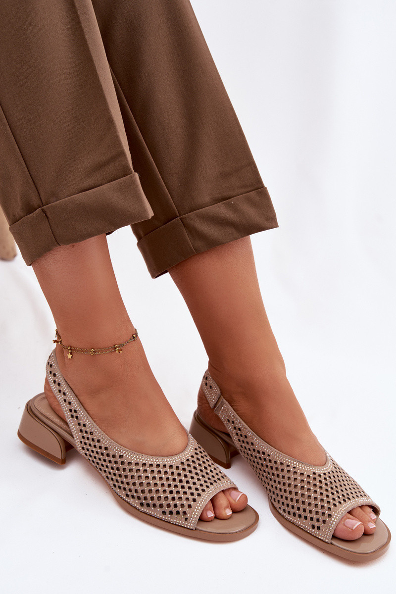 Decoratieve geperforeerde dames sandalen van suede Klocke D&A CR61-3131 zandkleur
