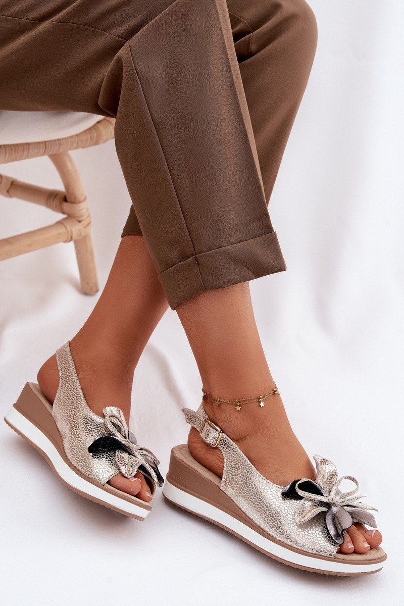 Leer Platform sandalen met ornamenten S.Barski GR61-5988 gouden kleur