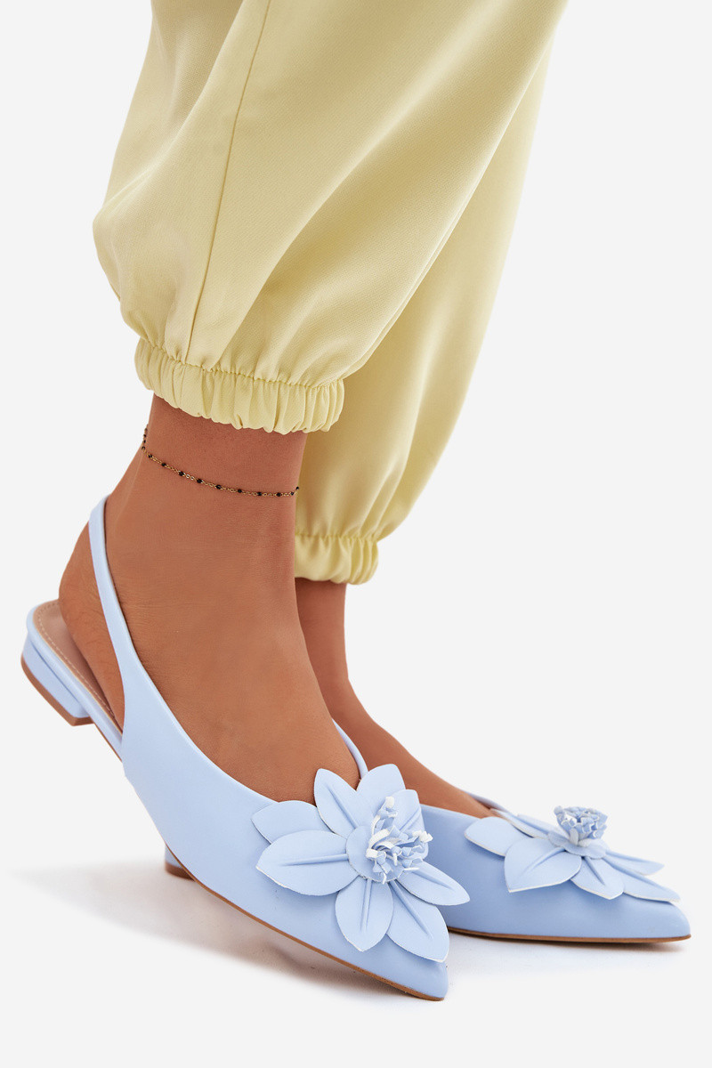Dames blauwe sandalen met brede hakken en decoratieve bloem Telivette