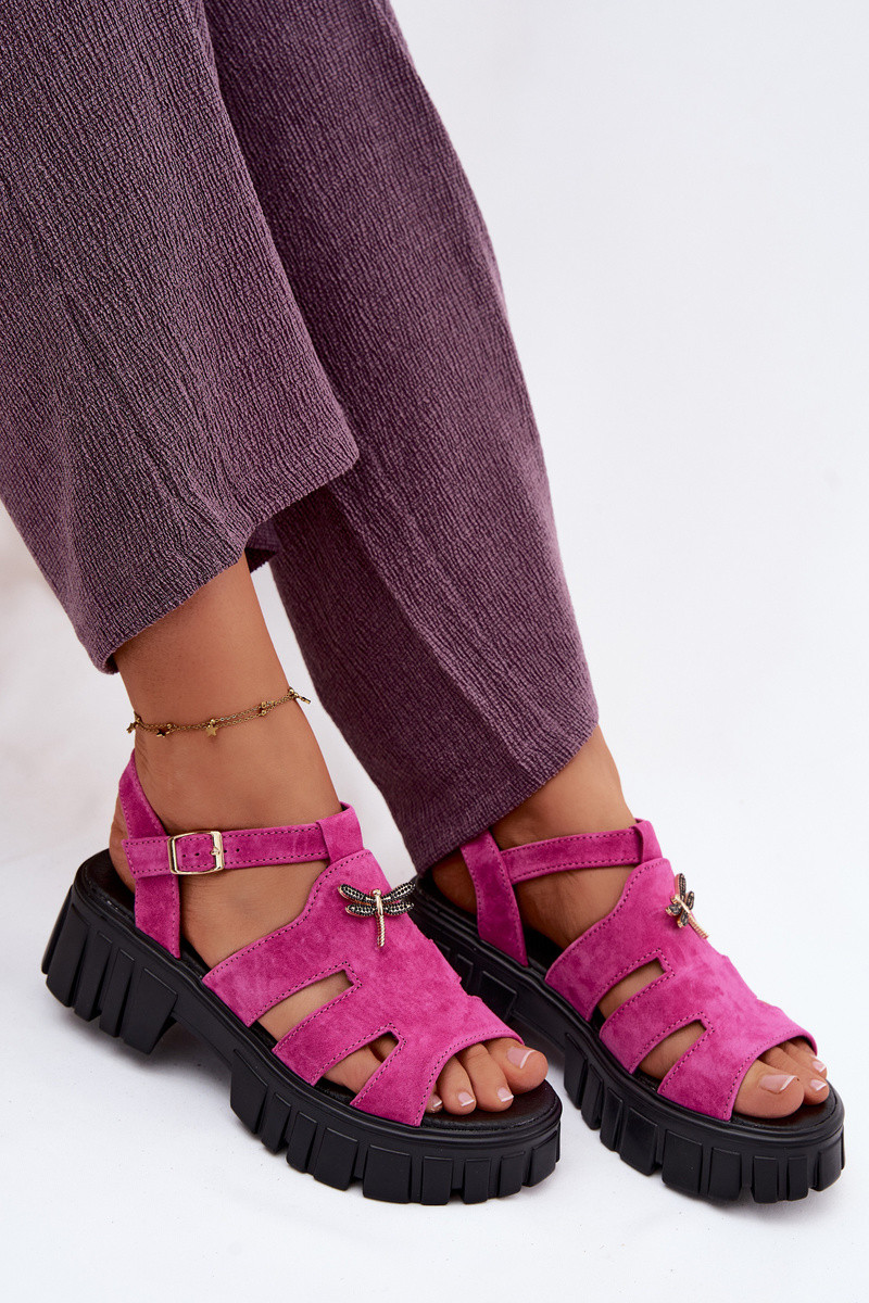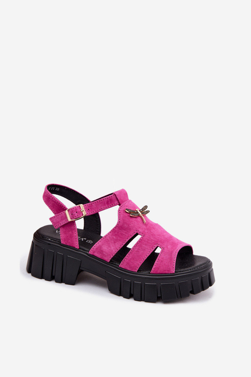 Leren faux suede dames platform sandalen met gespen Vinceza 79627, zwarte kleur