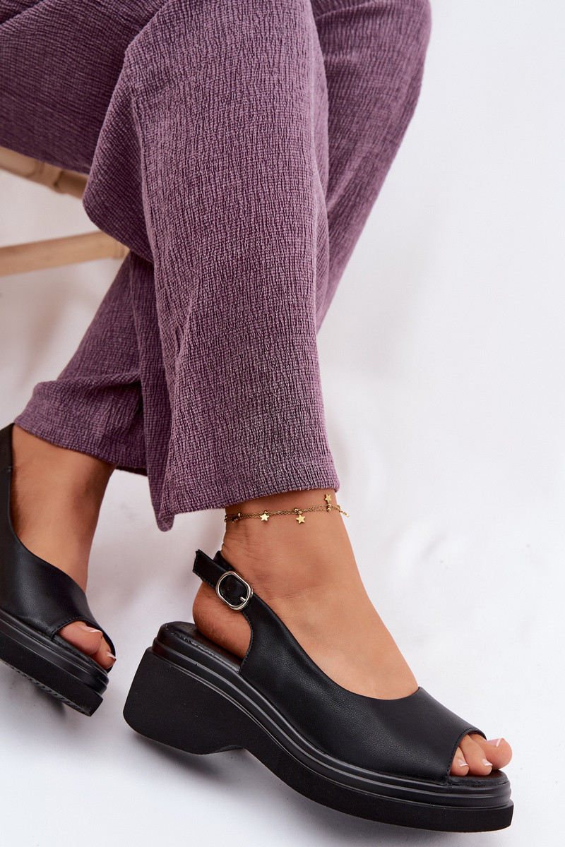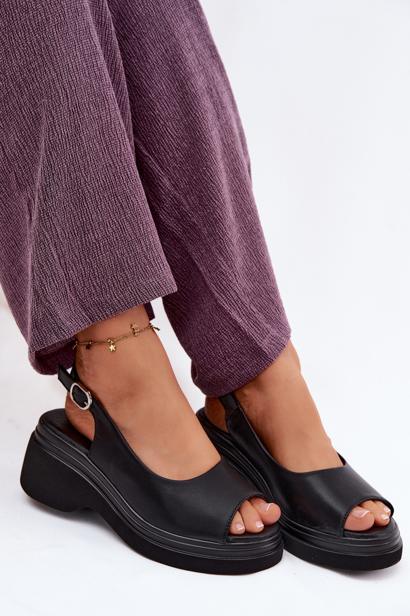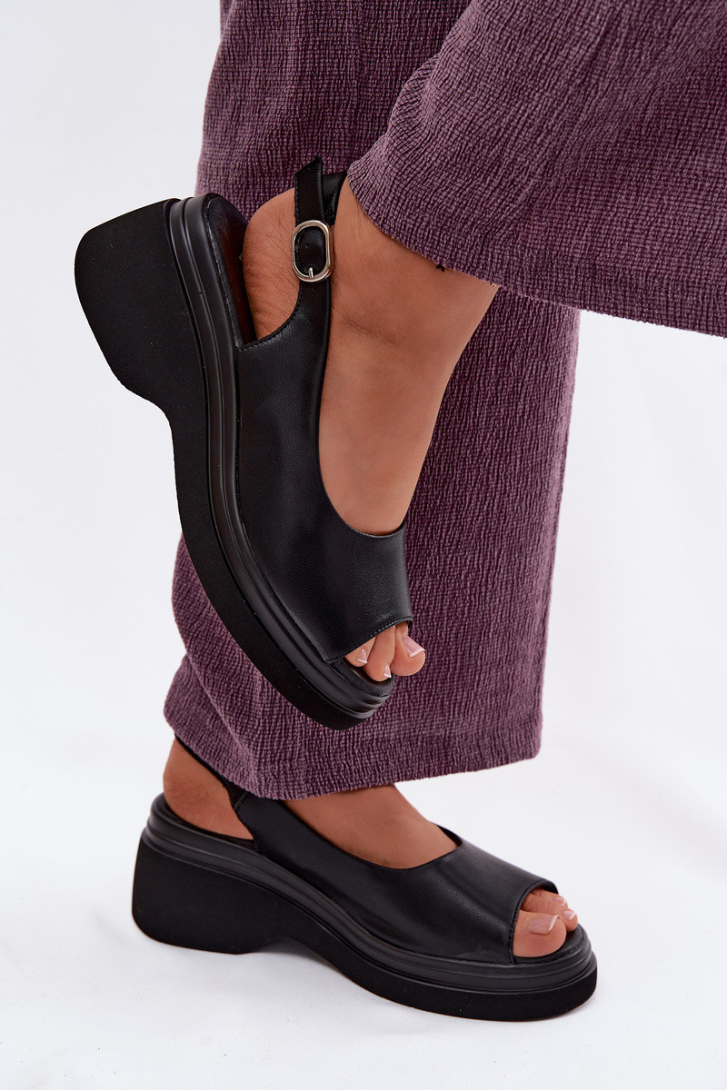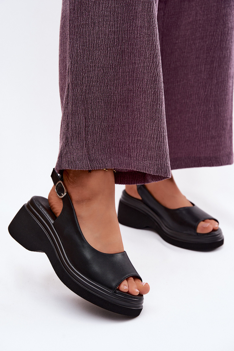 Leren platform sandalen Vinceza 66936, zwarte kleur
