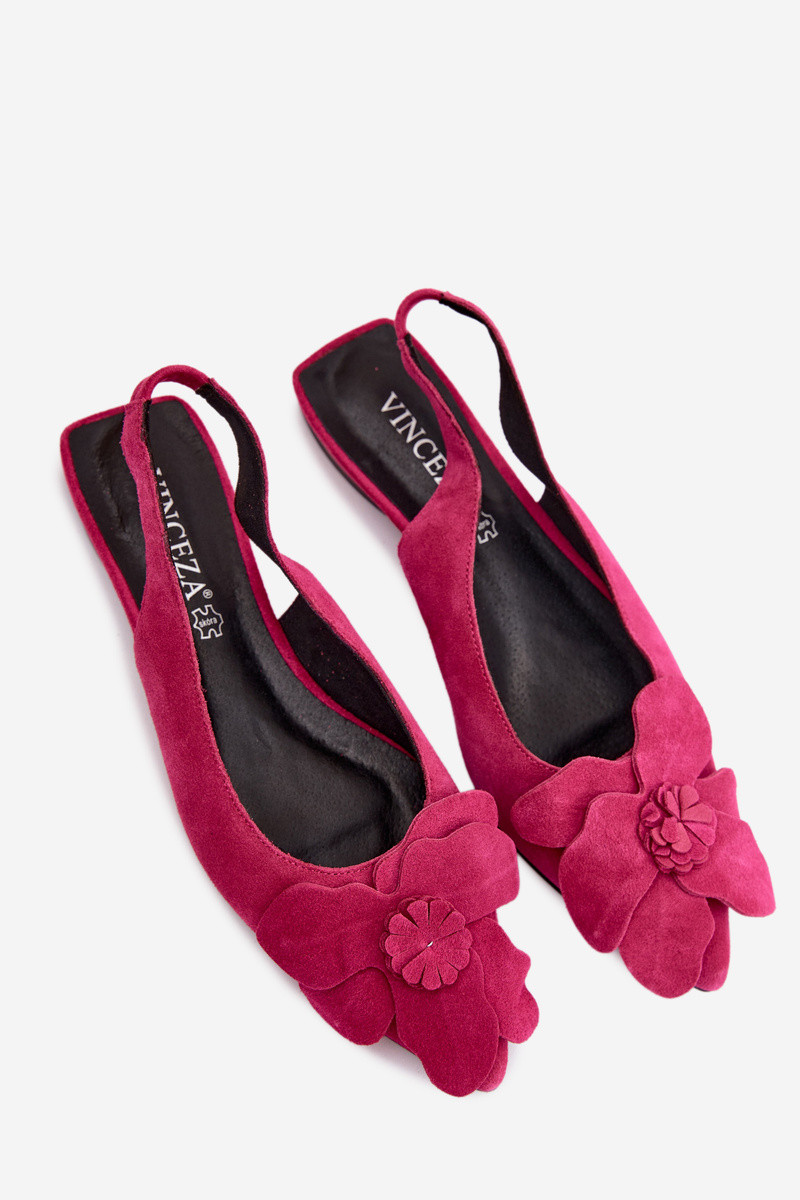 Roze faux suede dames sandalen met een brede hak en bloem Vinceza 66951