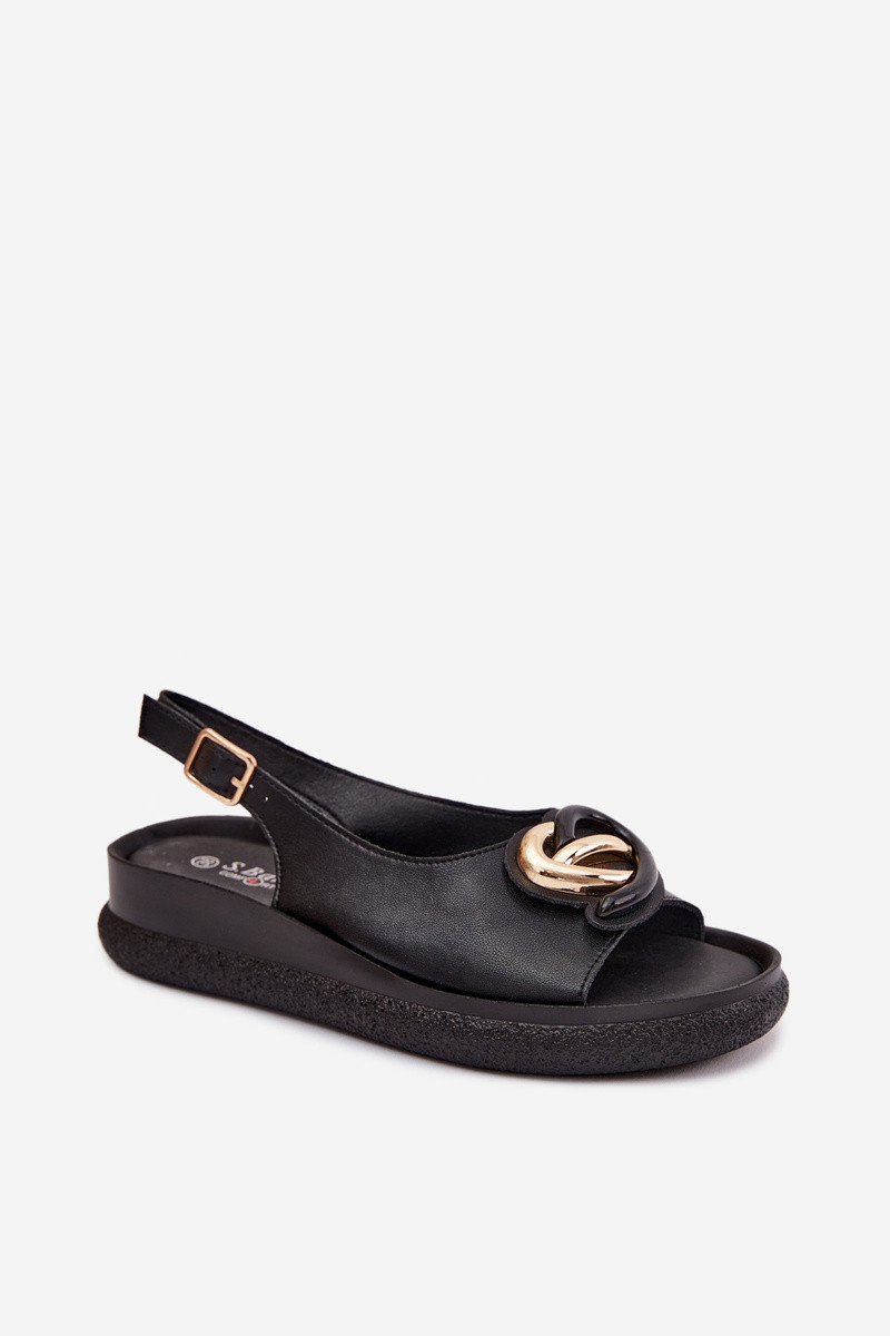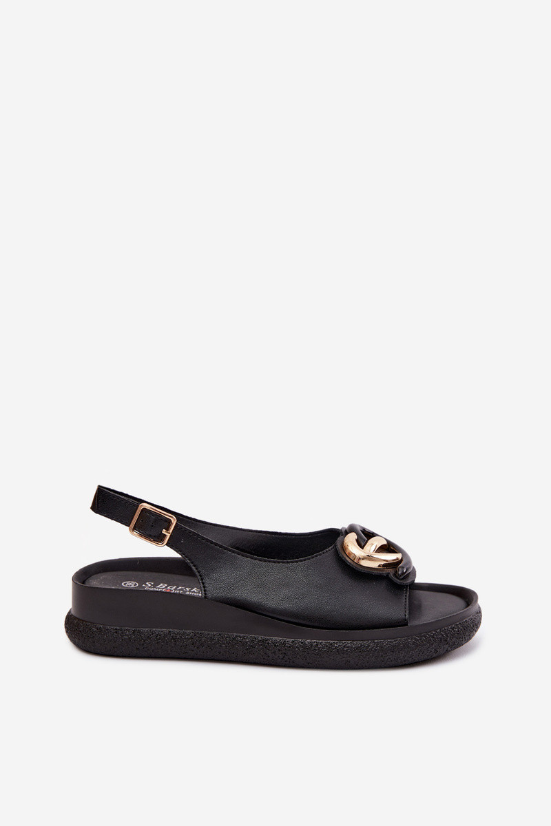 Leren platformsandalen met ornamenten in zwart