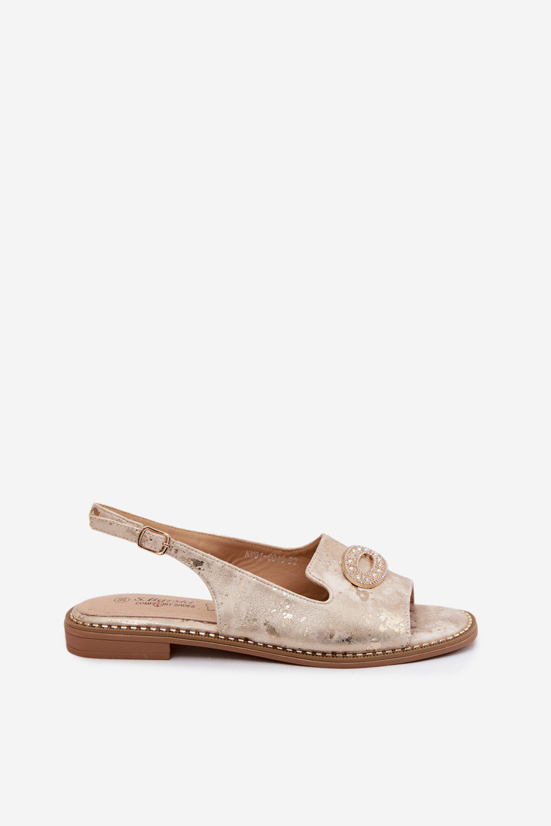 Platte sandalen voor dames met ornamenten S.Barski KV61-6040 gouden kleur