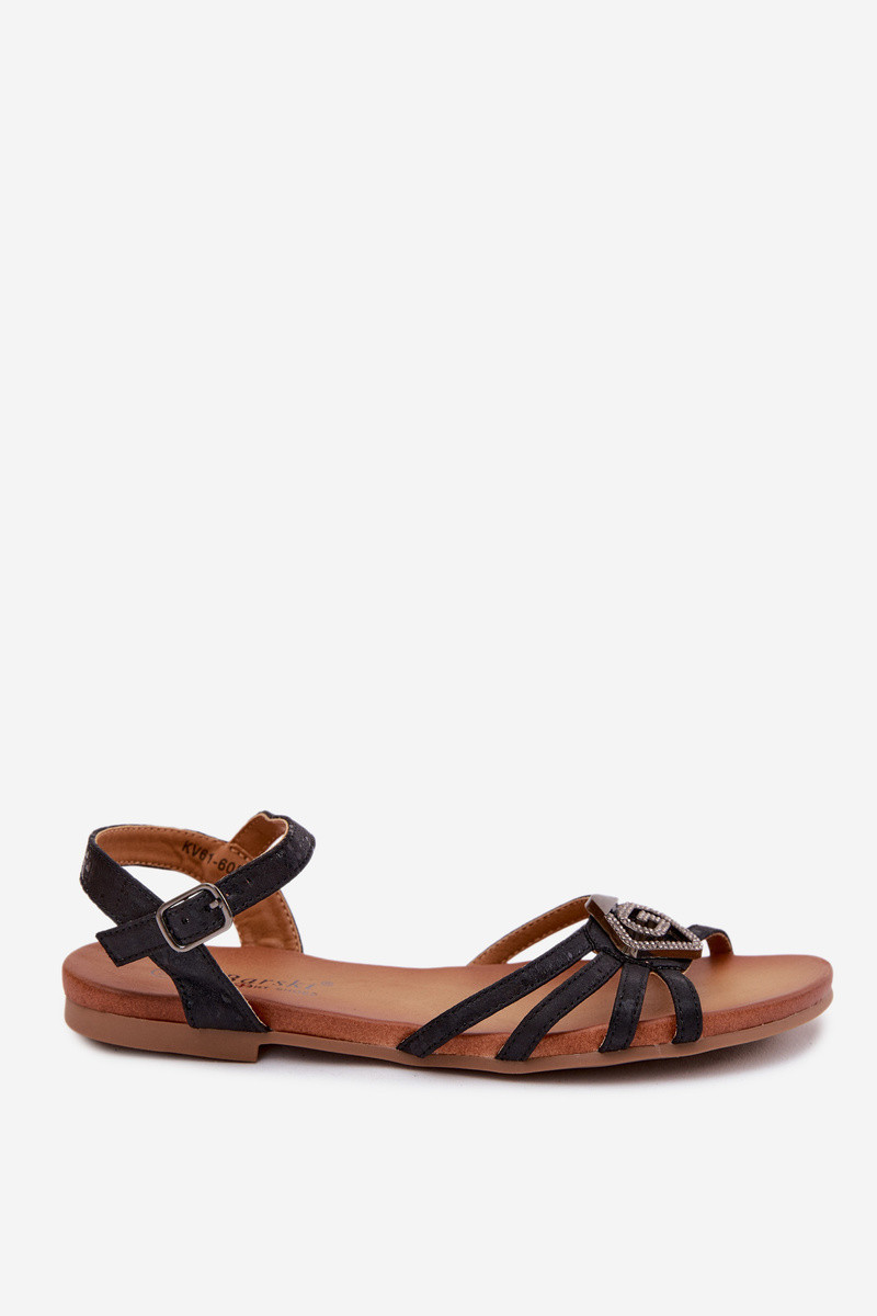 Platte sandalen voor dames met bandjes en decoratie S.Barski KV61-6056 zwarte kleur