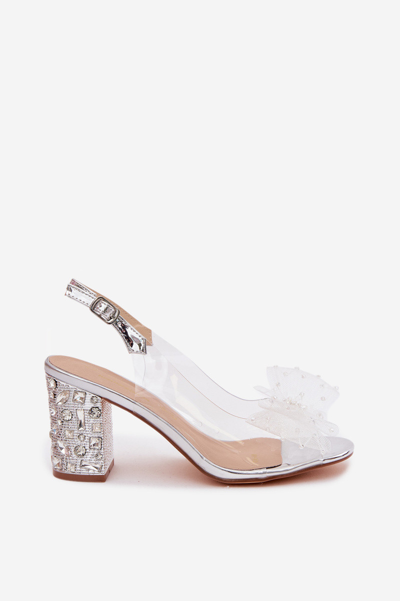 Sandalen met hak en fonkelende edelstenen, gaas met strikken D&A MR61-9010 zilver