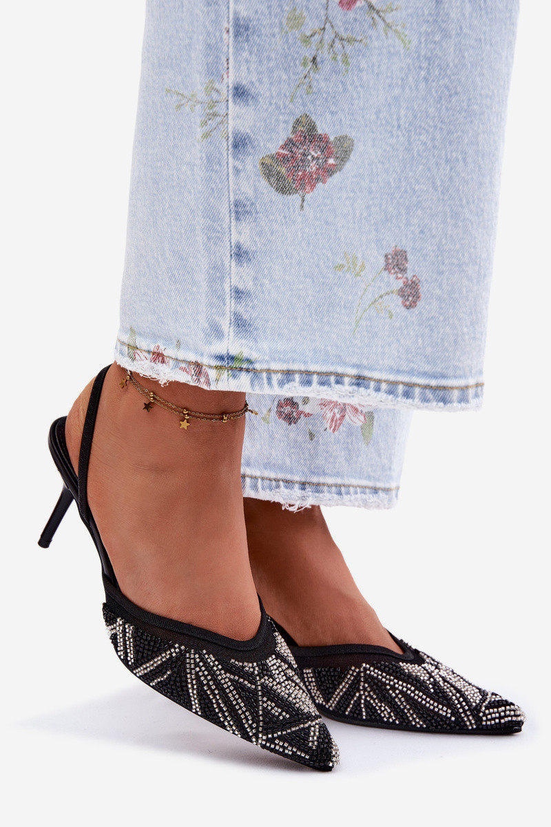 Gedecoreerde sandalen met gaas en dunne hakken zwart Bedira