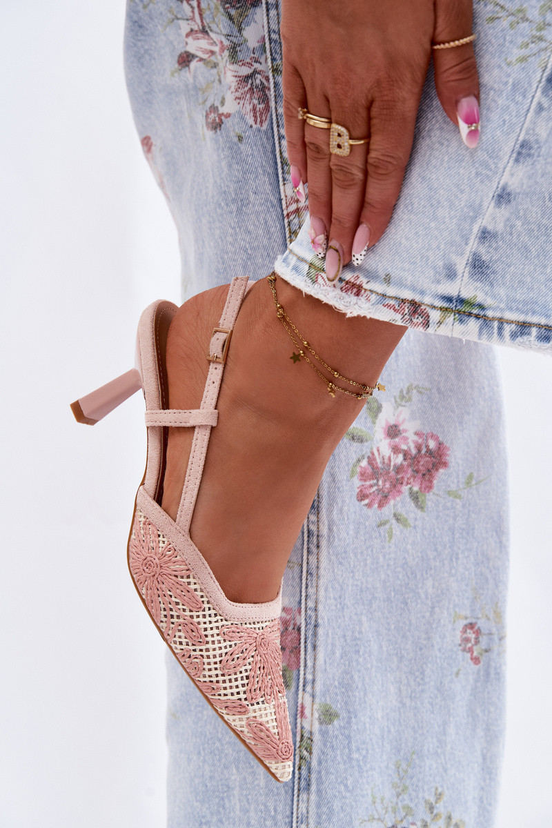 Zandkleurige hoge hakken sandalen met bloemen Kelmira