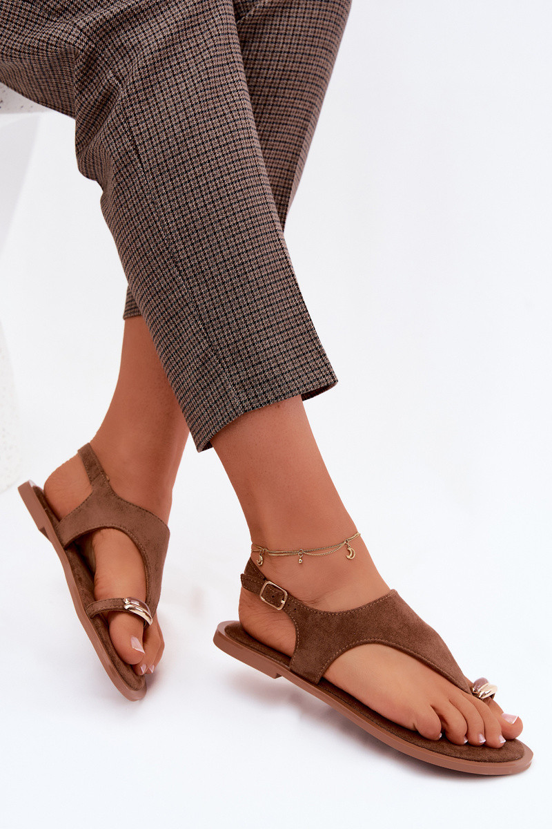 Gouden platte sandalen met faux suede details in zwart Jelviane