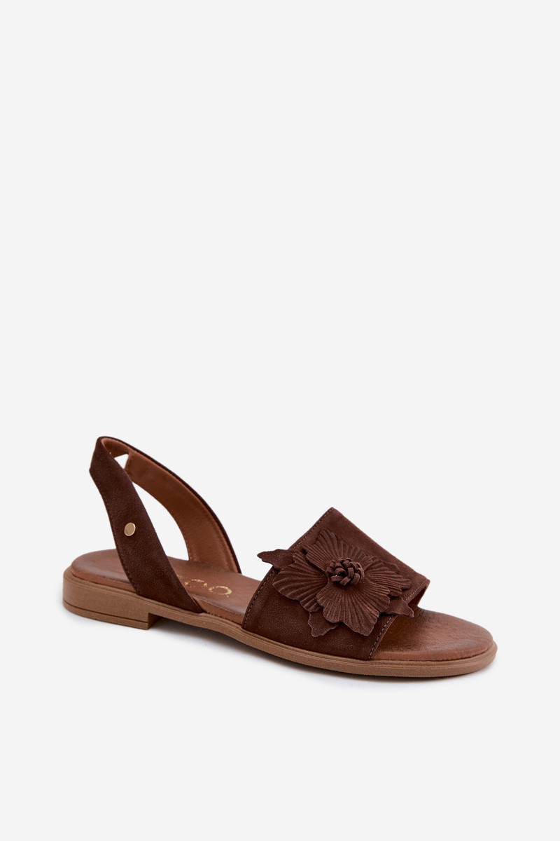 ZazooLeer Sandalen van suède met brede hakken Met sierlijk Een bloem Zazoo 407471 CzekoladoIne