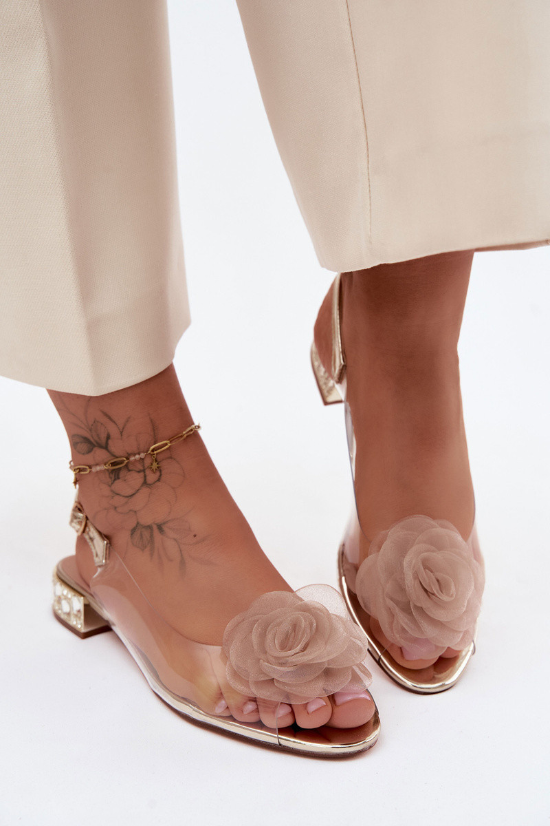 Dames transparante sandalen met rozen D&A MR61-9003 goud