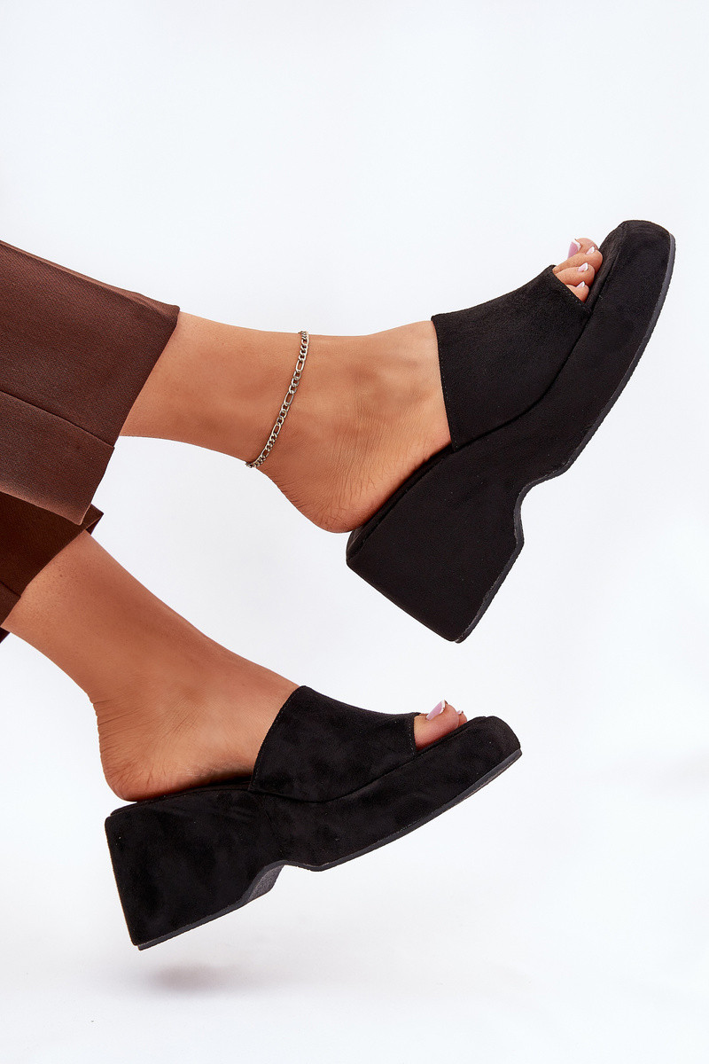 Dames slippers van kunstsuede met platform in zwarte kleur Afisal