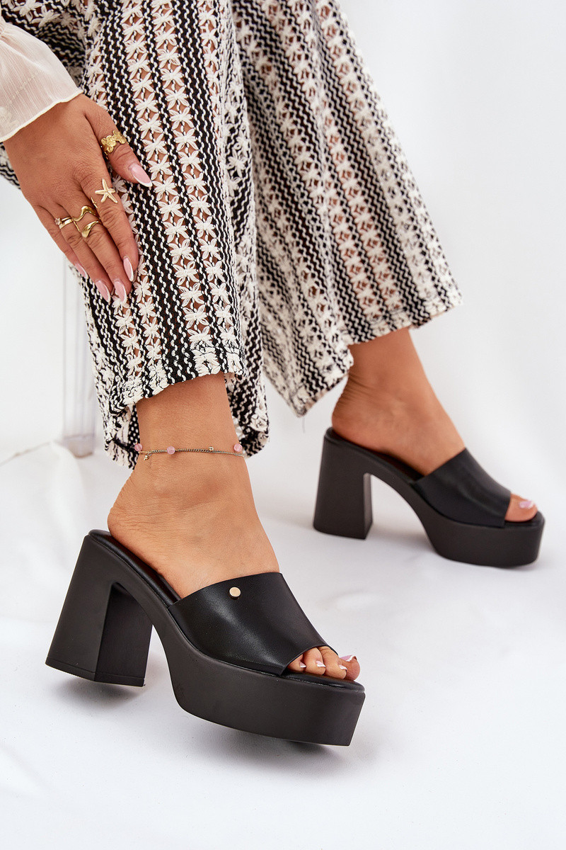 Dames slippers van eco leer met hakken en platform zwarte kleur Tamirella