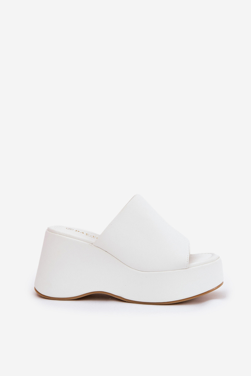 Synthetische leren slippers voor vrouwen met plateau in wit