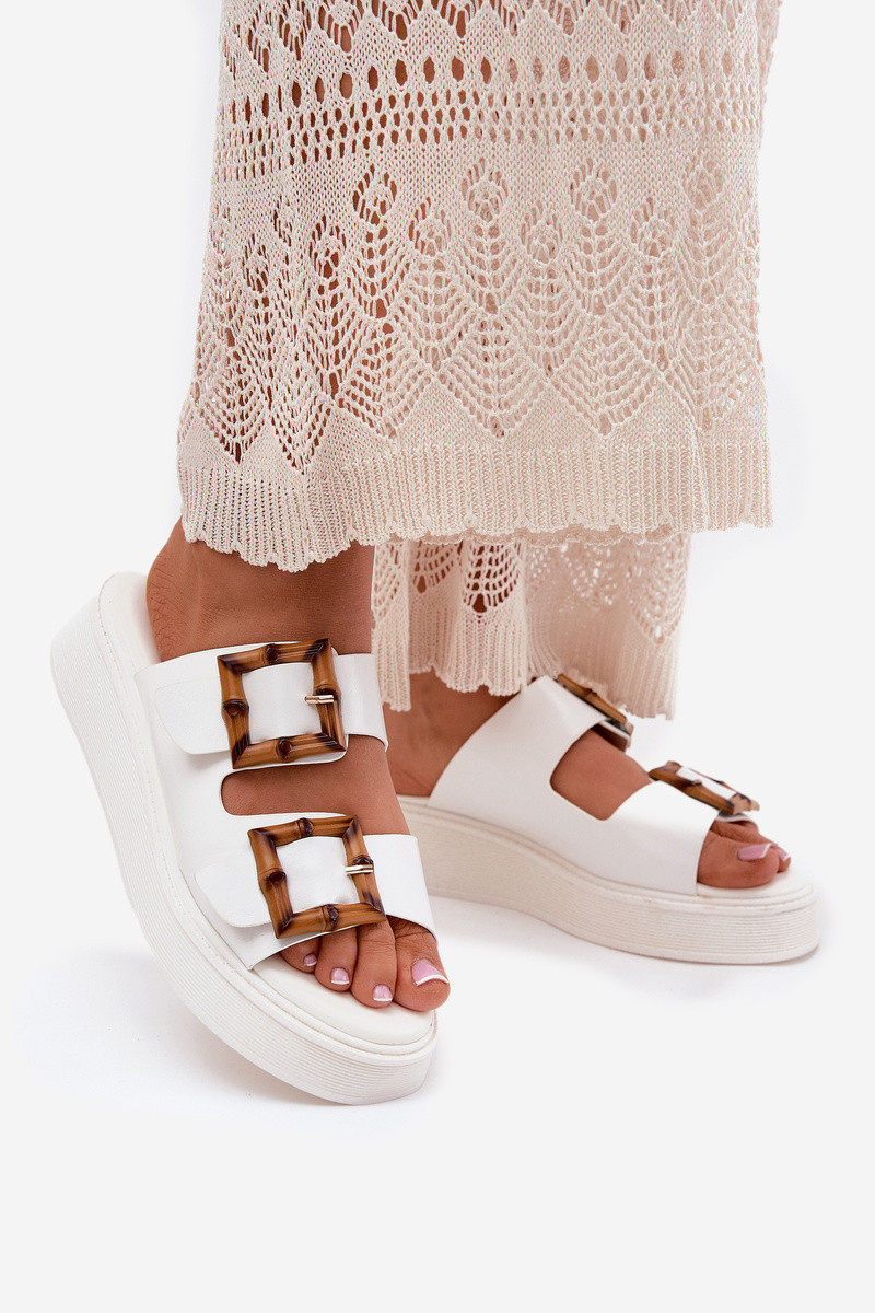 Dames pantoffels van kunstleer met platform en gespen Xanivia witte kleur