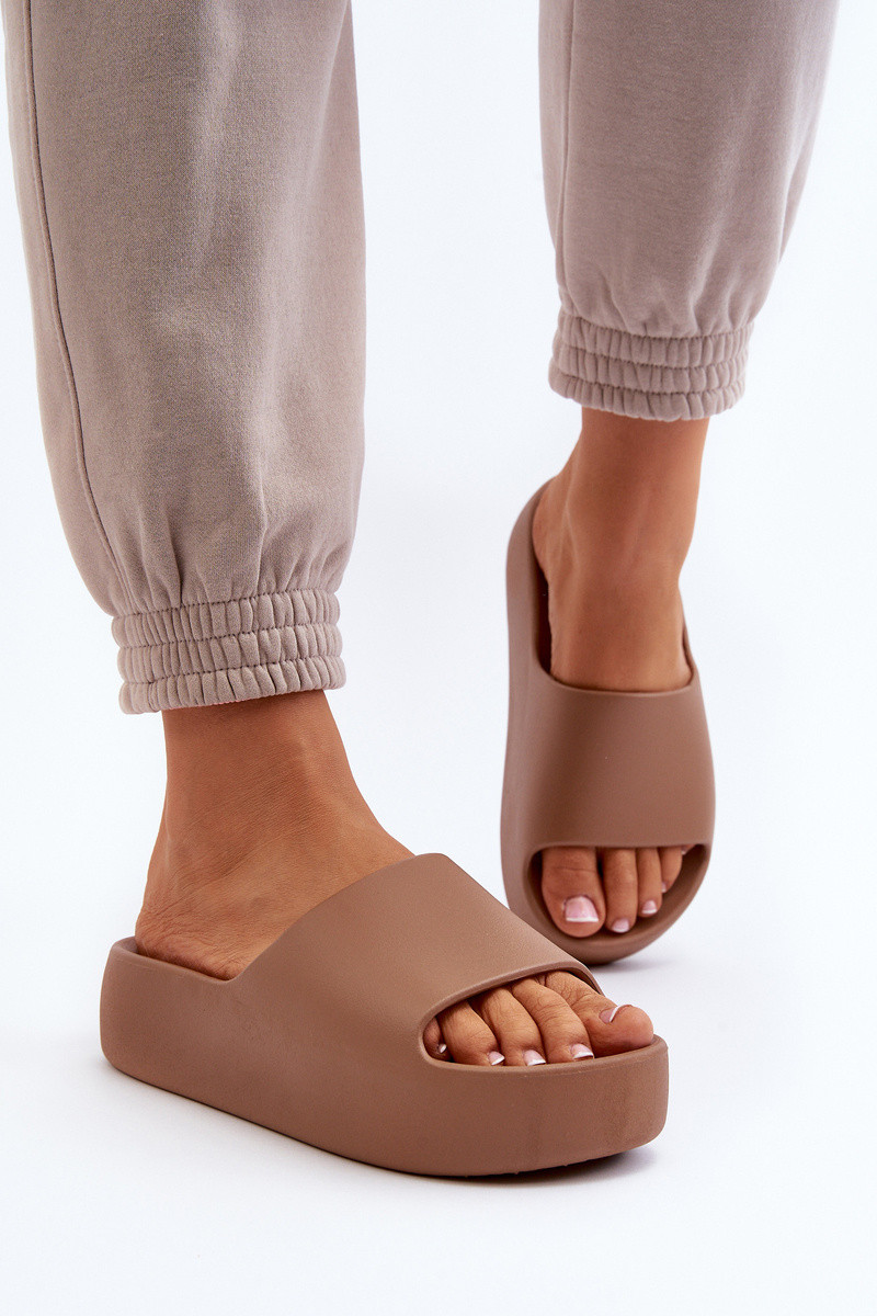 Dames Slippers Op dikke zool bruine kleur Oreithano