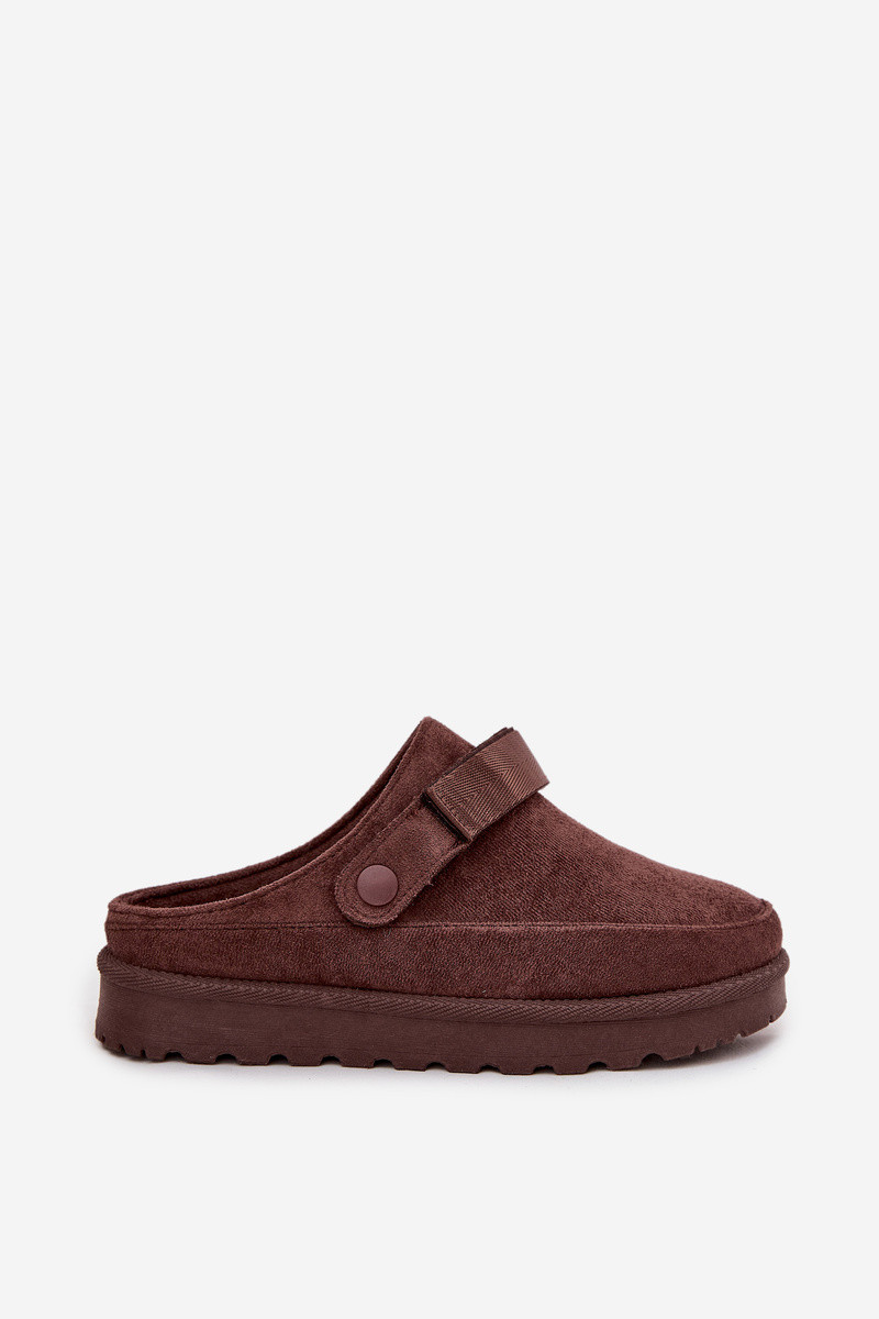 Dames warme slippers met bont binnenin met platform chocolade kleur Azida