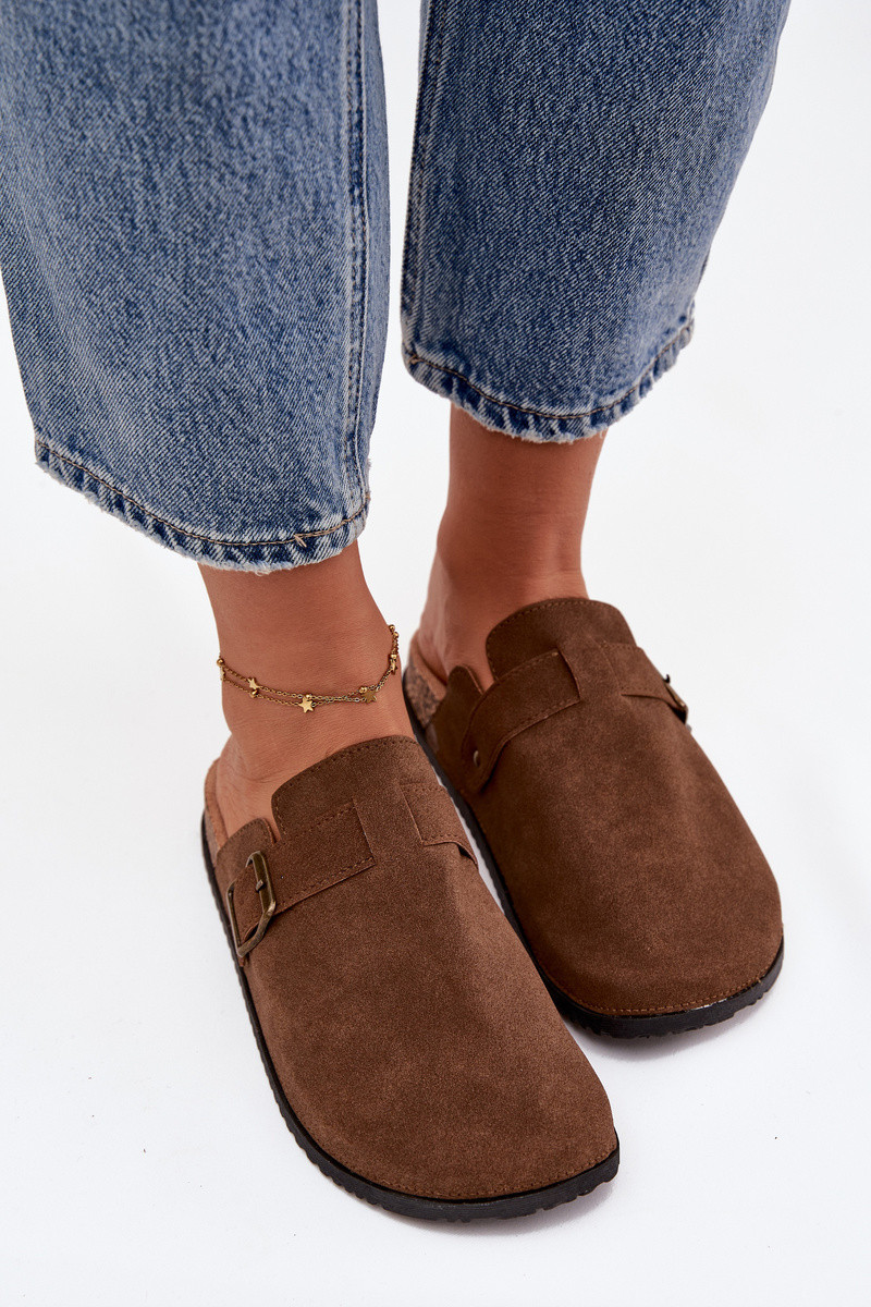 Dames klomp slippers met platform en gespen, bruine kleur Selio