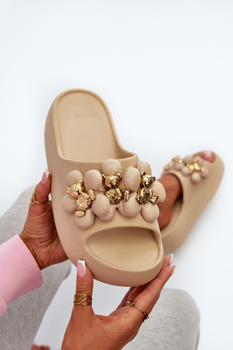 Dames Slippers LichtgeInicht pantoffels met mooie details Op dikke zool beige Bremavia