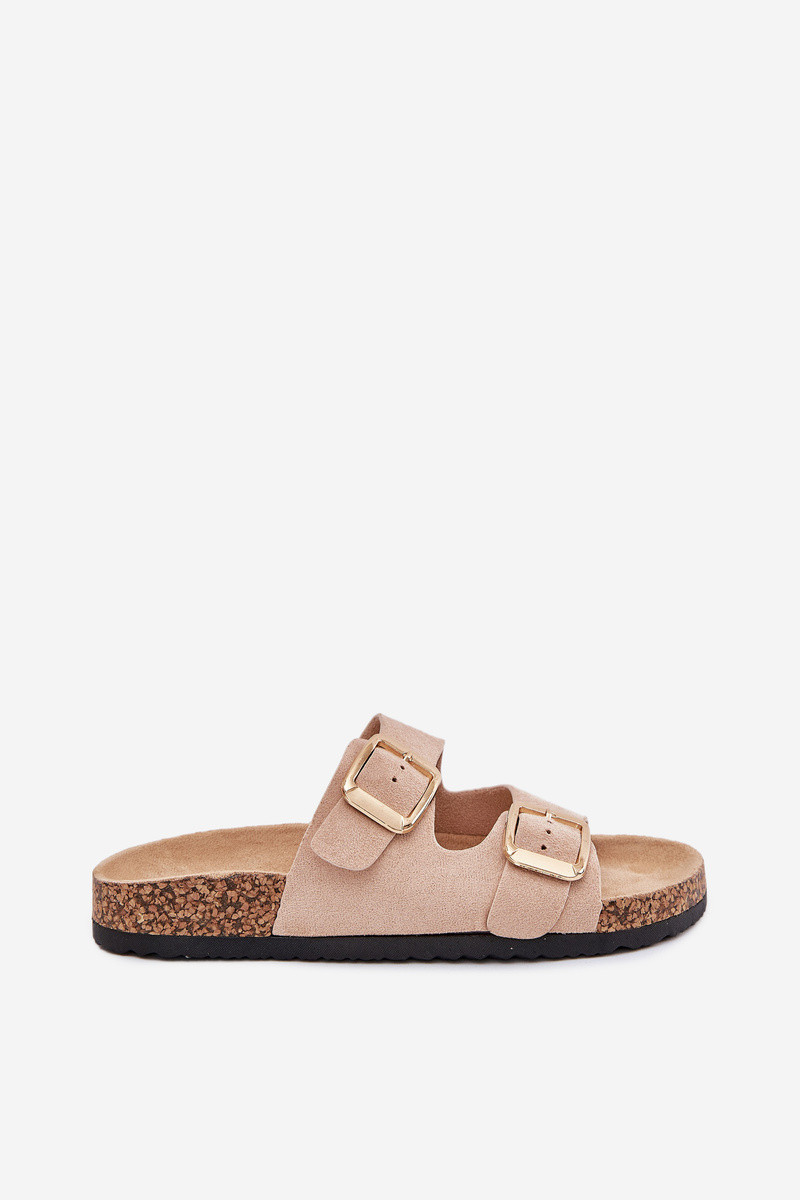 Damespantoffelsvan eco-suèdeu gouden kleur met gespen beige Vorella