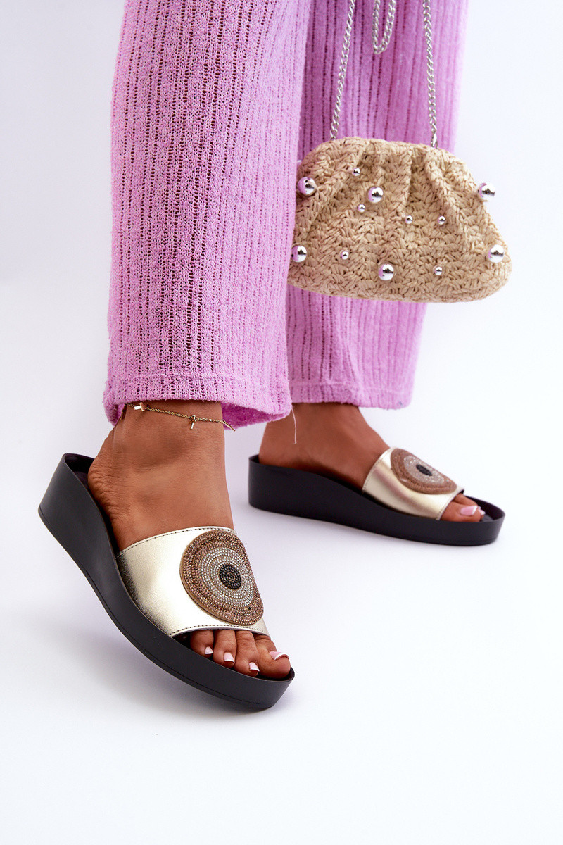 Leren slippers voor dames met ornamenten S.Barski KV27-019 in goud