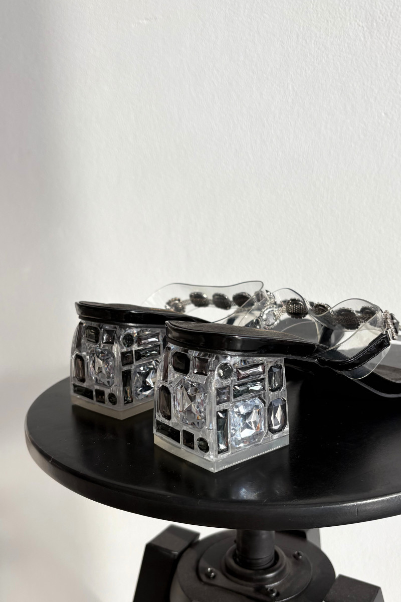 Dames slippers met glinsterende steentjes D&A MR1037-02 zwart