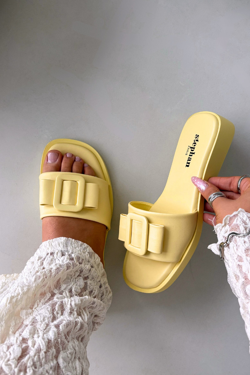 Damespantoffels met brede hakken met gespen geel Melivra