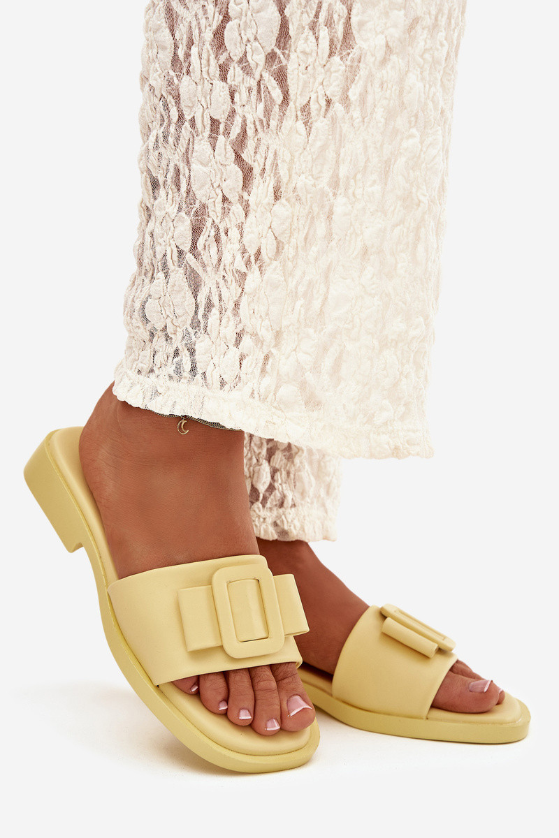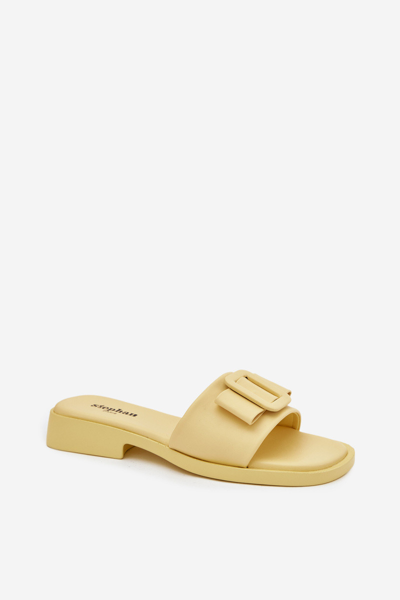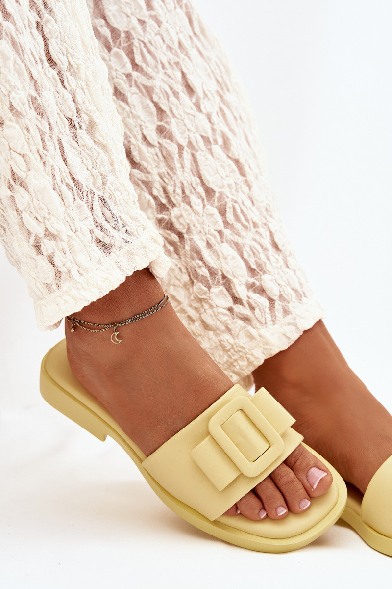 Damespantoffels met brede hakken en gespen in gele kleur „Melivra"