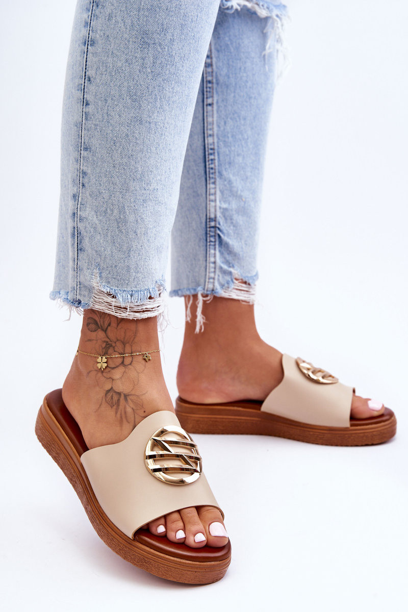 Dames zandkleurige slippers met ornamenten „Secrets"