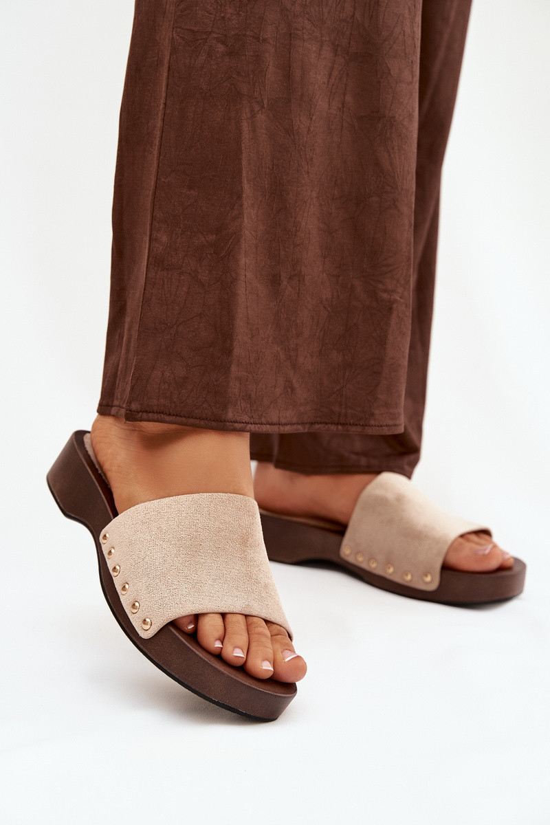 Damespantoffels Ze gouden kleurmi Studs beige Ferinna