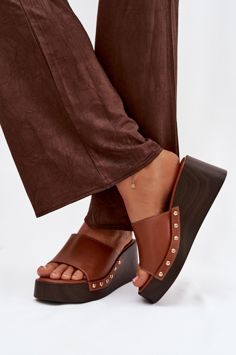 Dames platform slippers in goudkleur Arionne, bruin