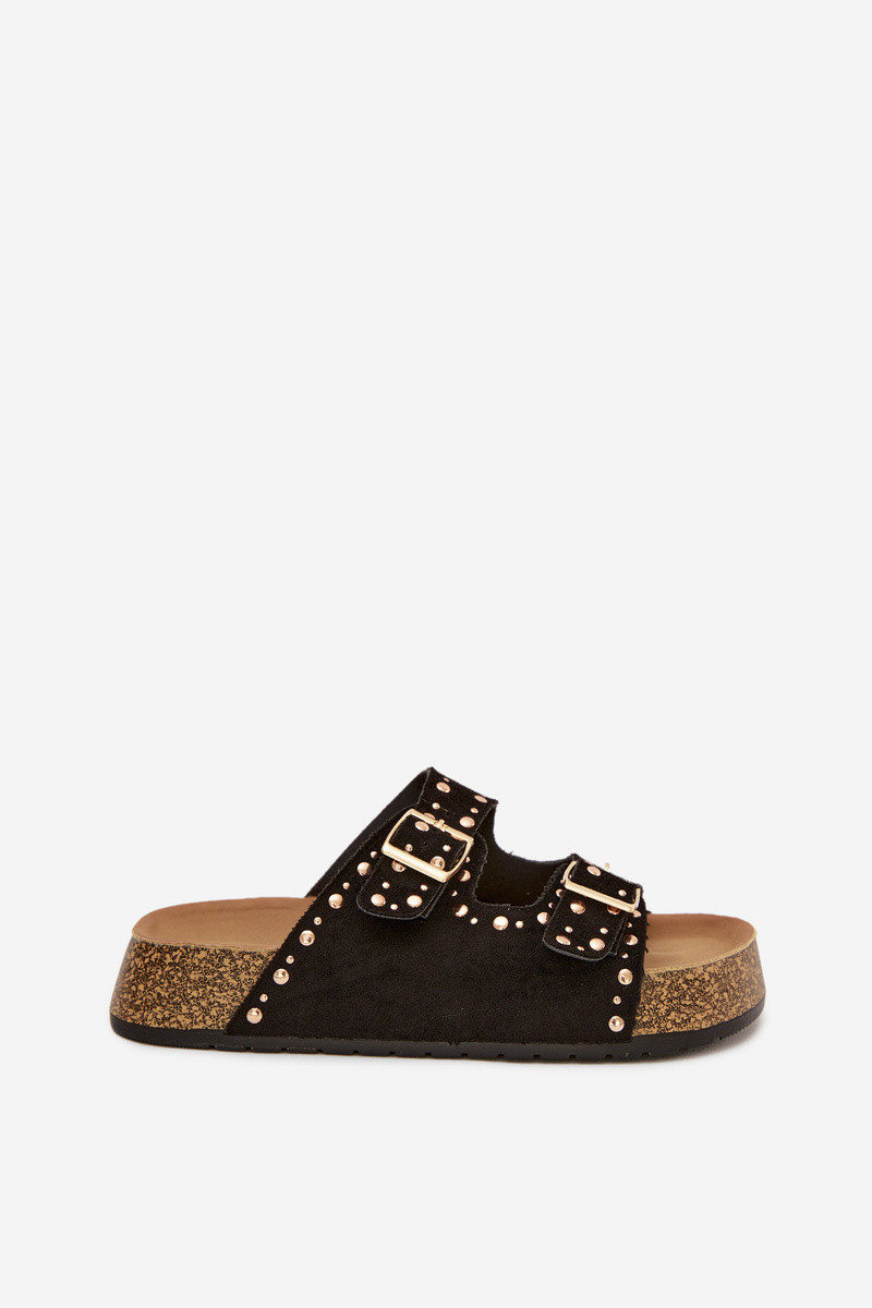 Dames zwarte slippers met gouden gespen en studs Tervina