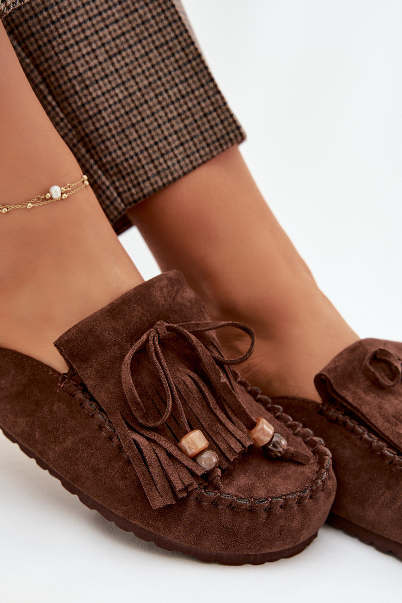 Damespantoffels met gouden gespen bruine kleur Fiorisse Damespantoffels met gouden gespen bruine kleur Fiorisse 2
