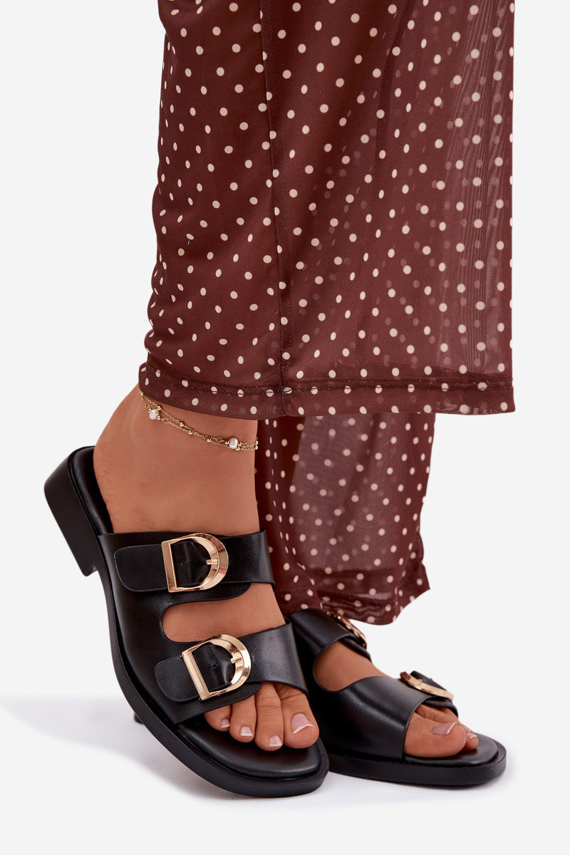 Dames slippers met gouden gespen, zwart