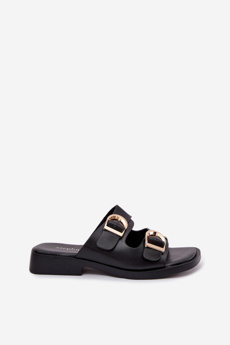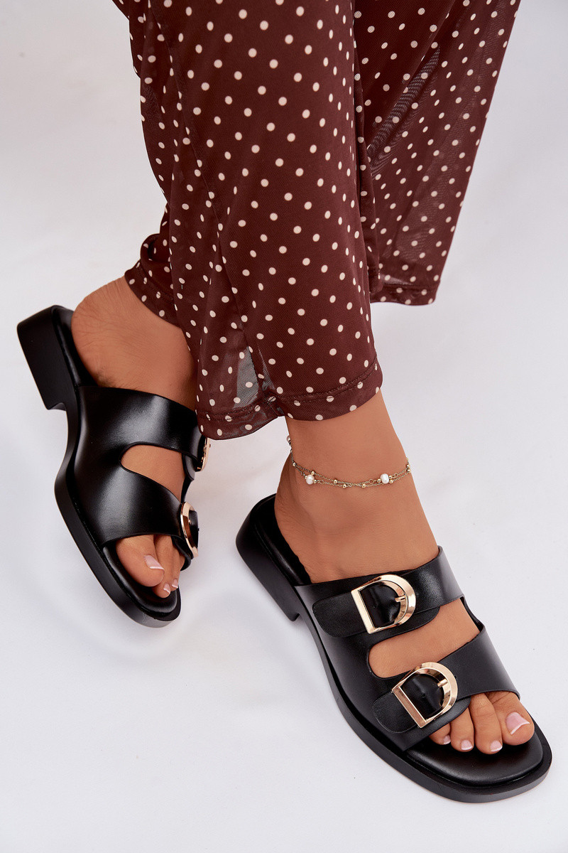 Dames slippers met gouden gespen, zwart