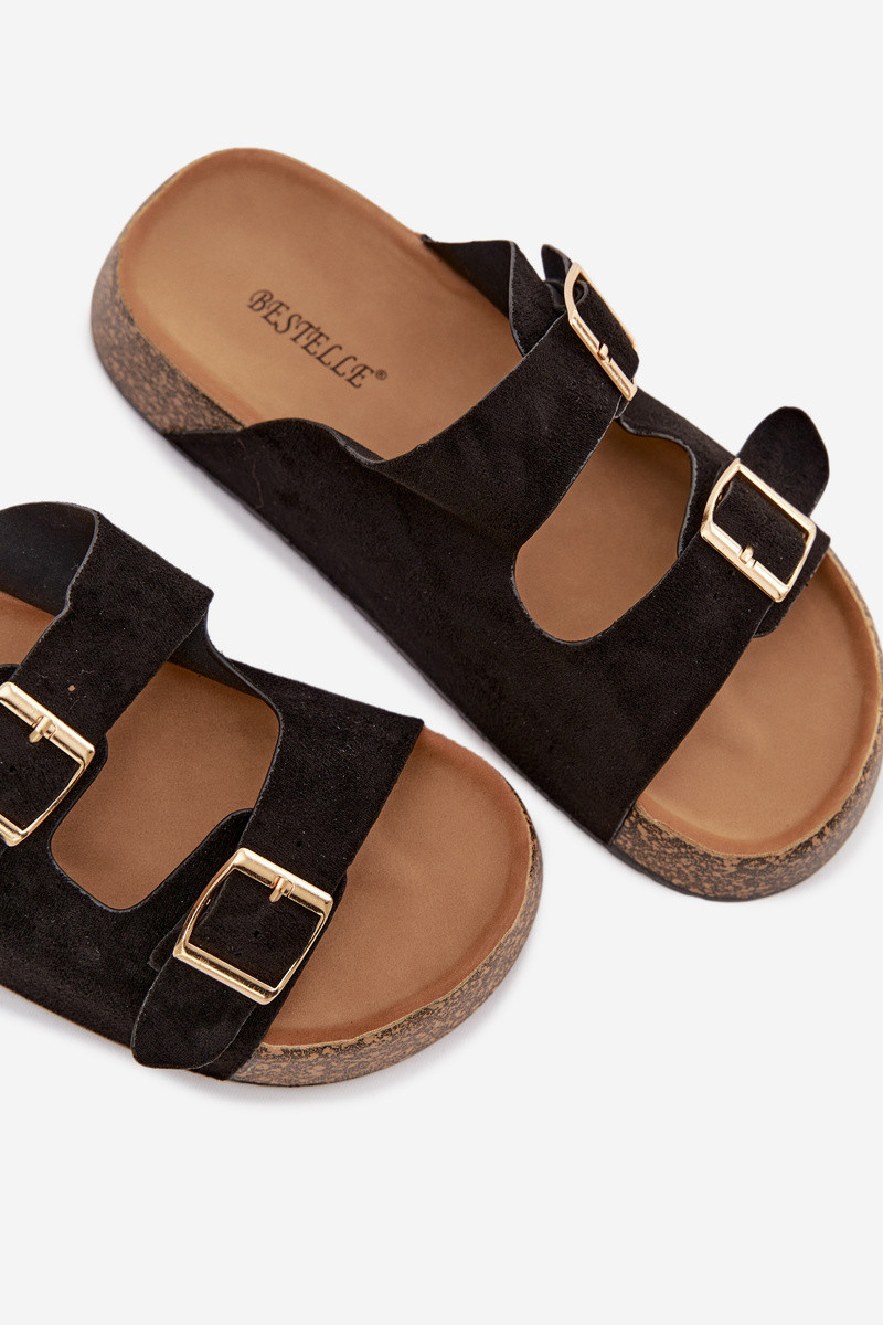 Zwarte damesplatformslippers met gouden gespen „Tovessa"