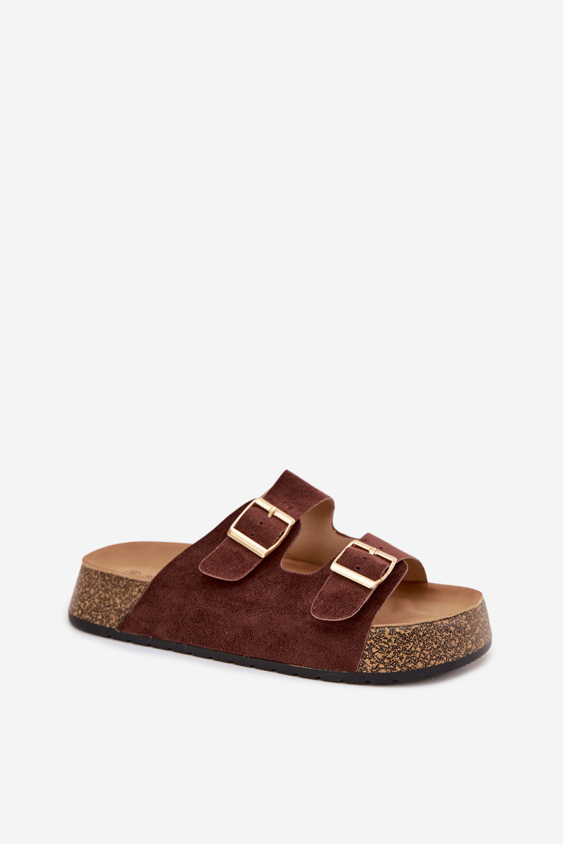 Bruine damesplatformslippers met gouden gespen „Tovessa"