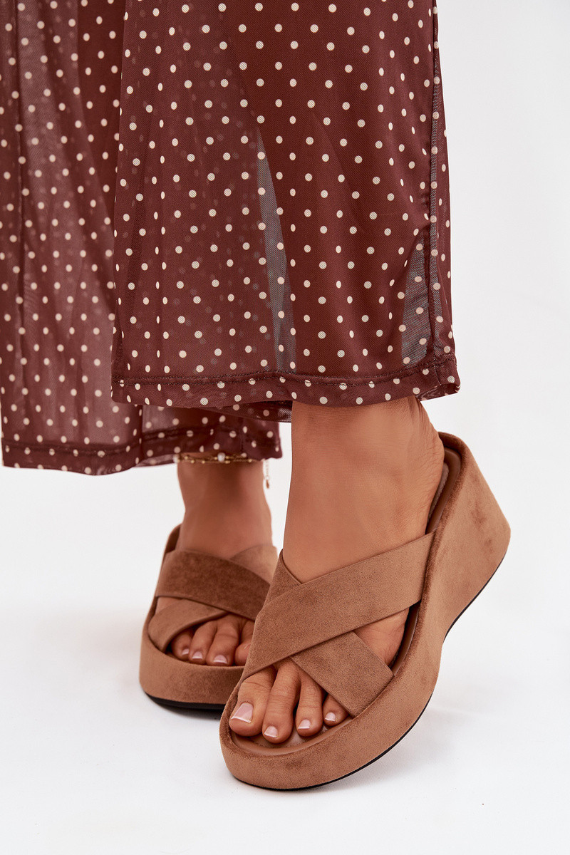 Bruine damesplatformslippers van kunstsuède „Calorine"