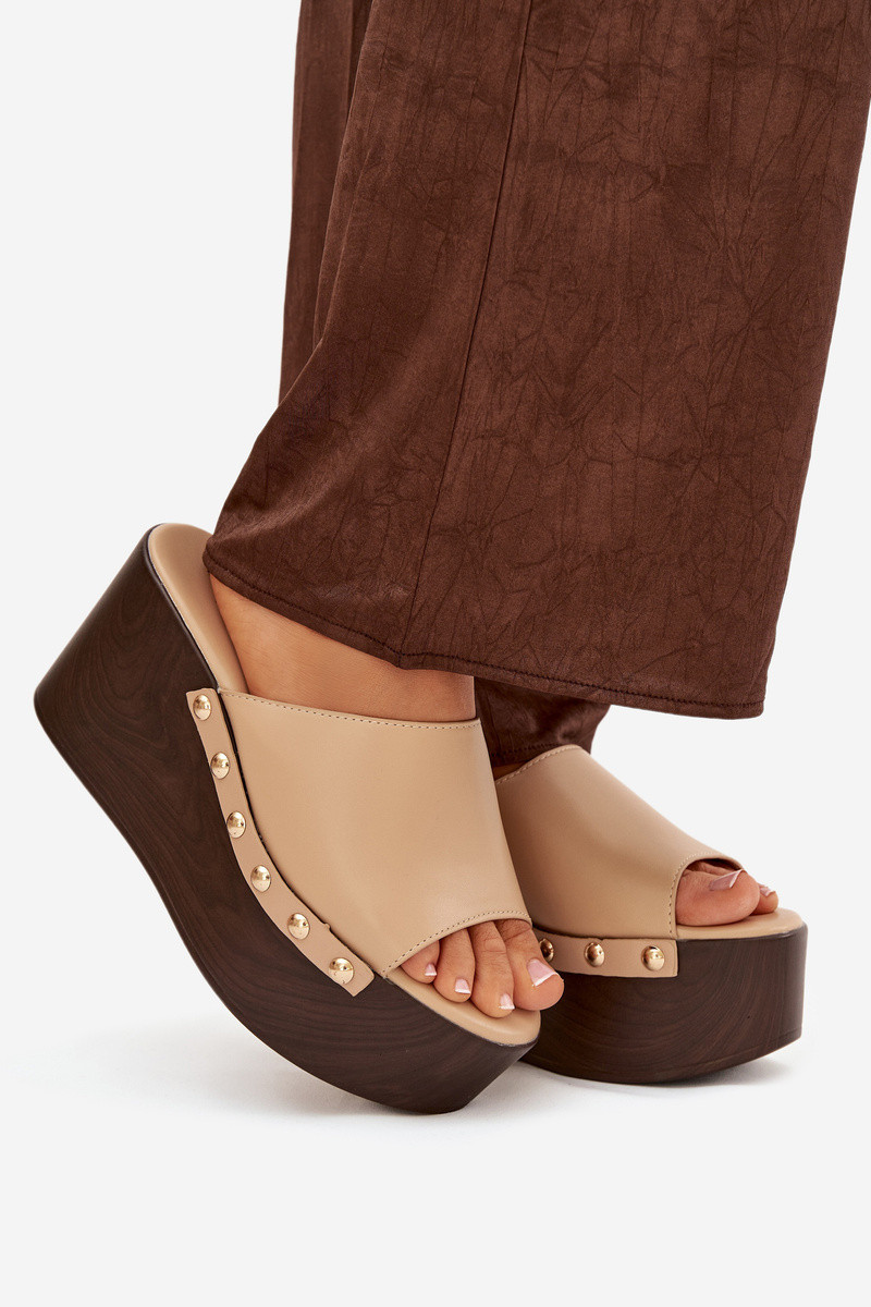 Damespantoffels Op de INig met klinknagels beige Het heeftreline