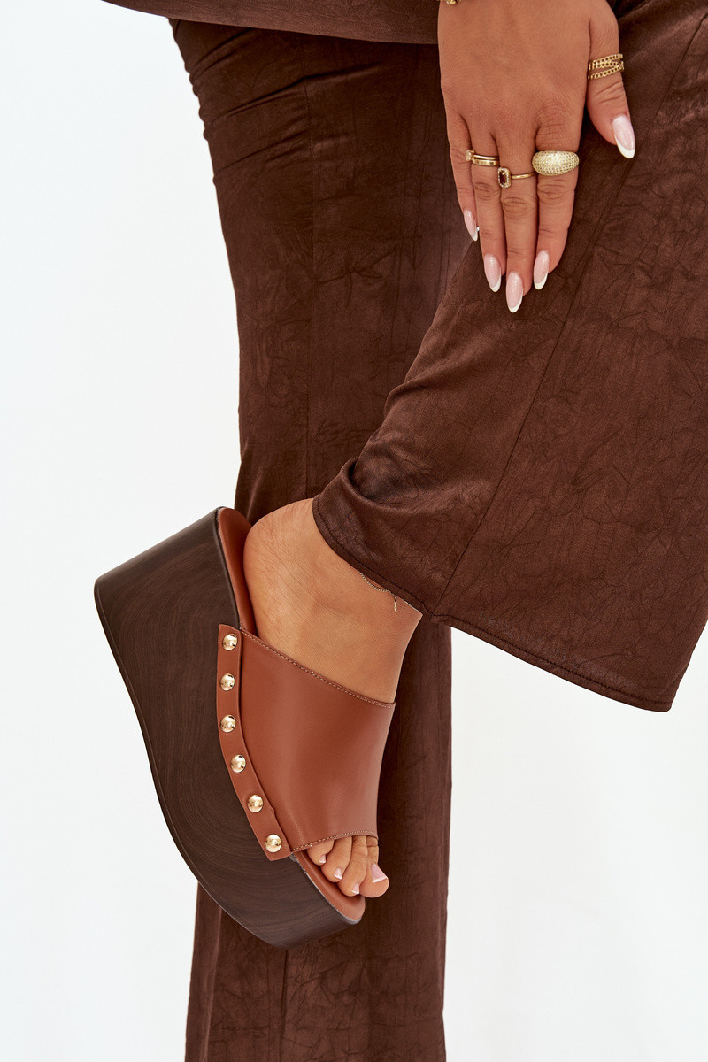 Tai turireline dames pantoffels op platform met studs in bruin