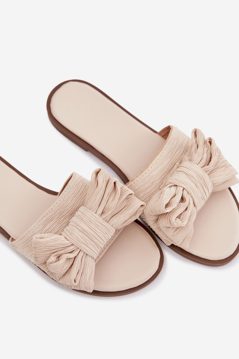 Dames slippers met brede hakken en strikken in zandkleur Amivelle