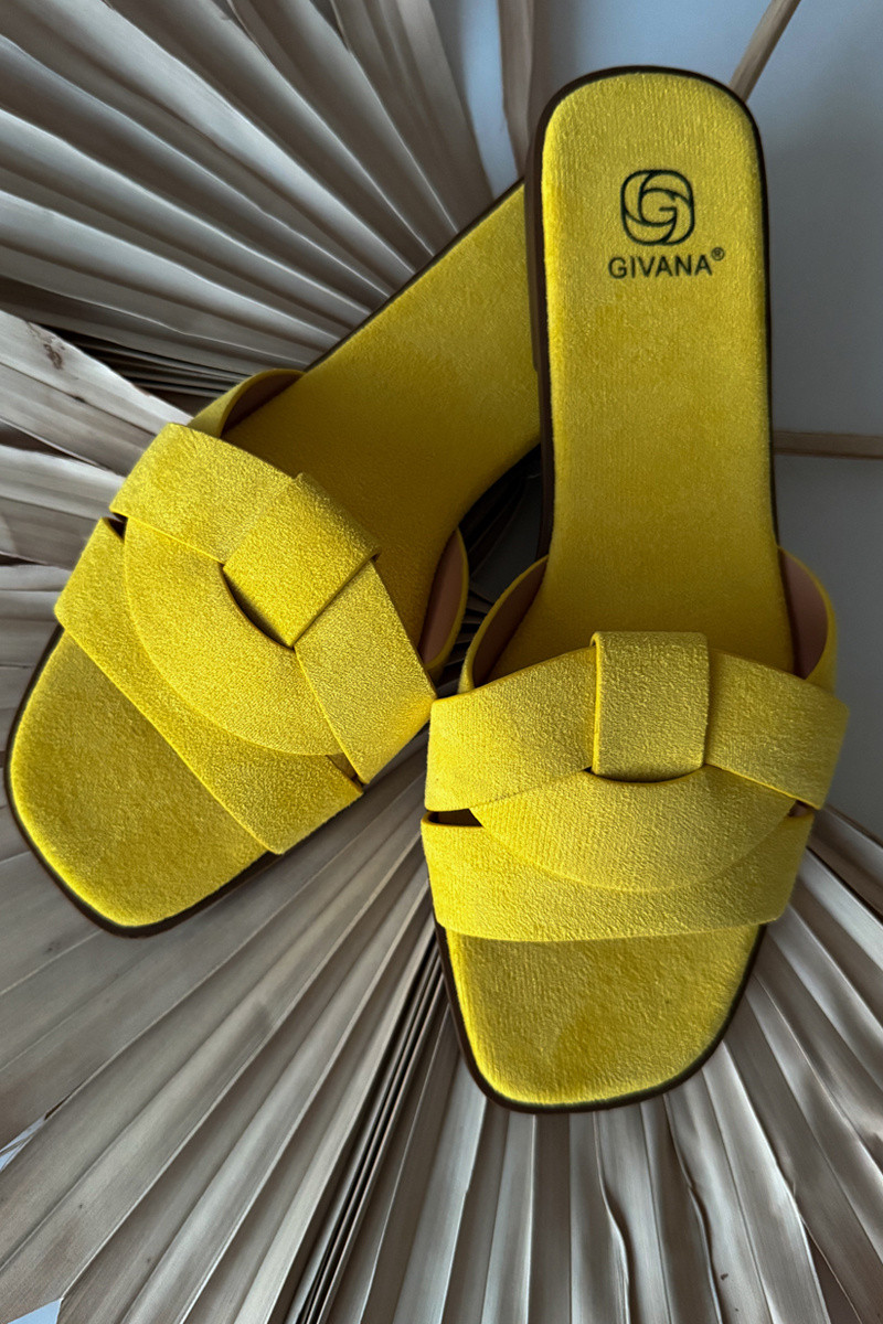 Dames platte pantoffels met bandjes van kunstsuède, gele kleur Florane