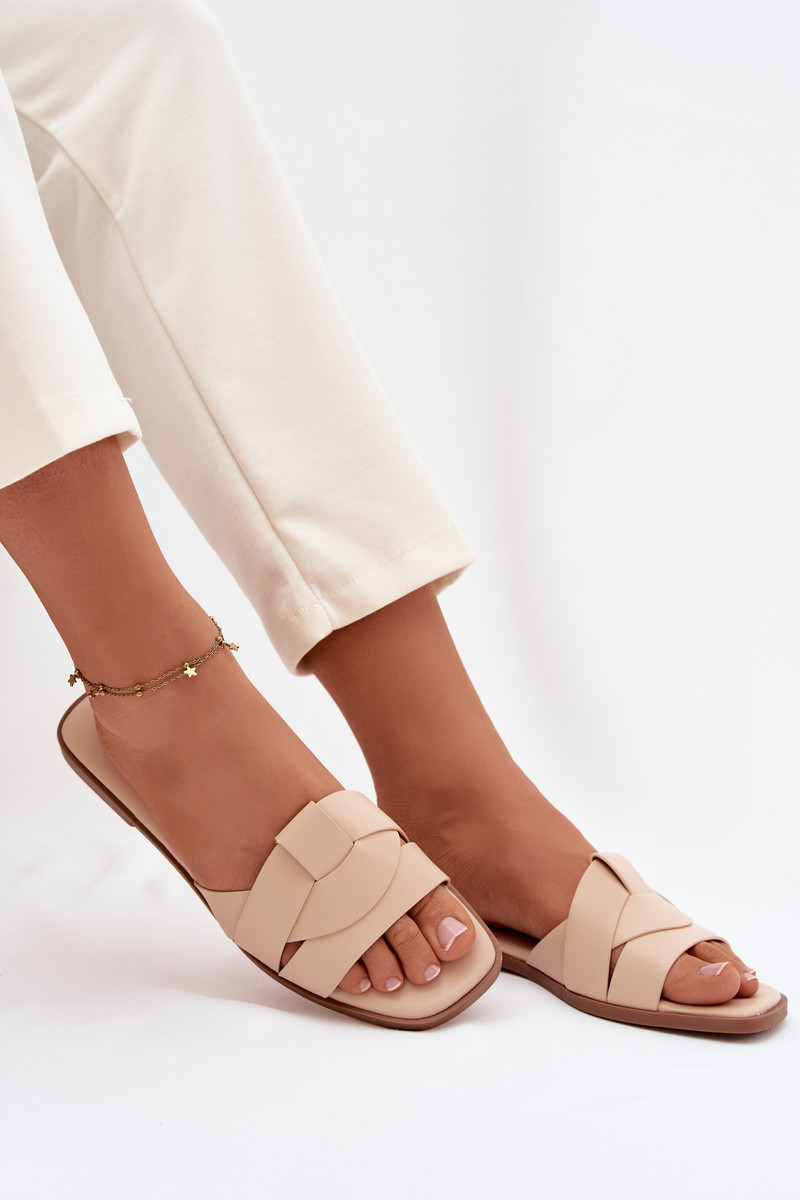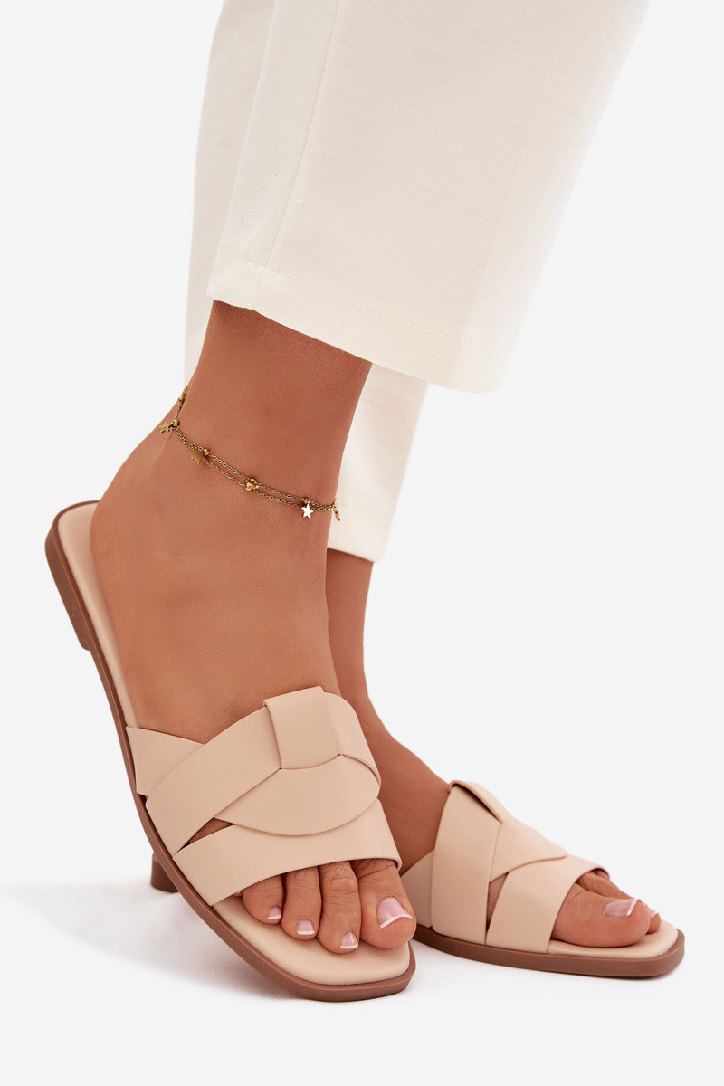 Dames sandkleurige platte pantoffels met bandjes Tai turirissae