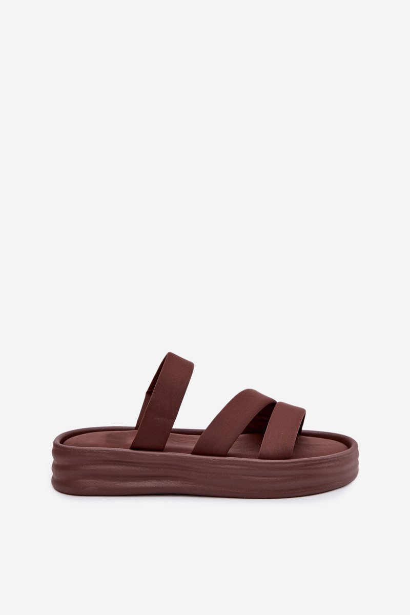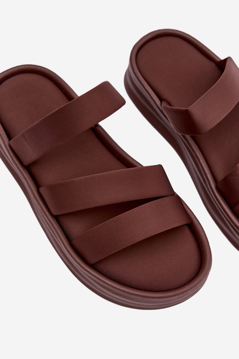 Dames platform pantoffels met bandjes in chocolade kleur Liorine