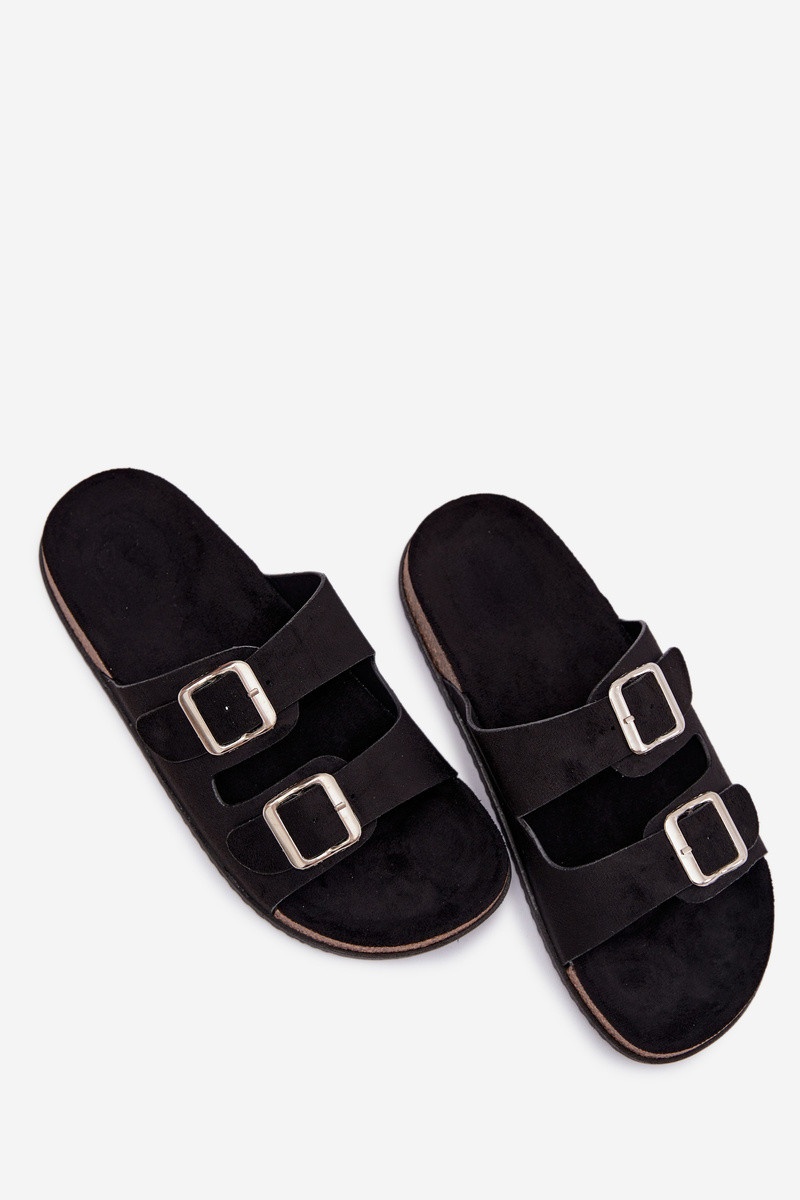Dames zwarte pantoffels met gespen Oliena