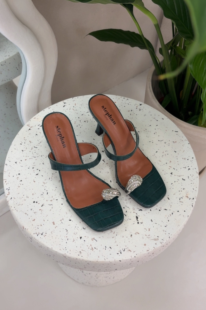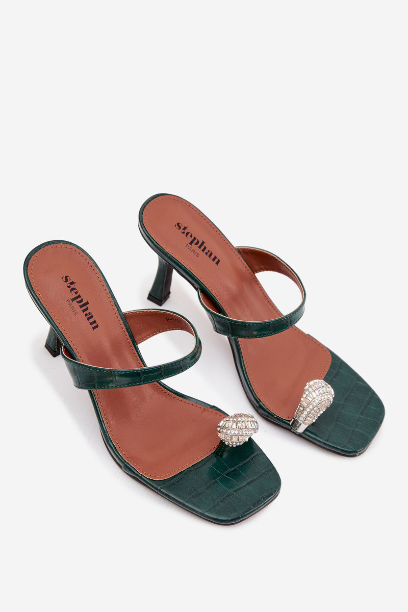 Dames flesgroene pantoffels met dunne hakken en decoratieve details Lorissa