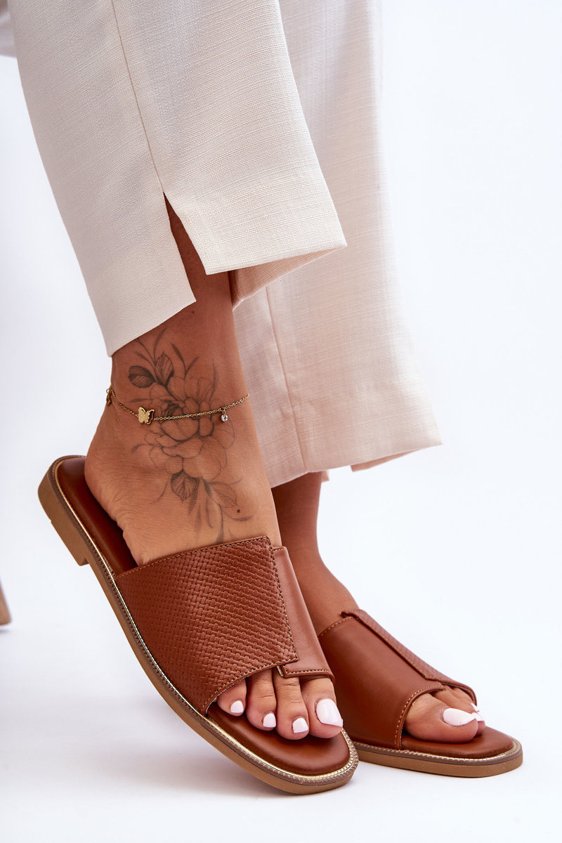 Damespantoffels Leer bruine kleur Harmony