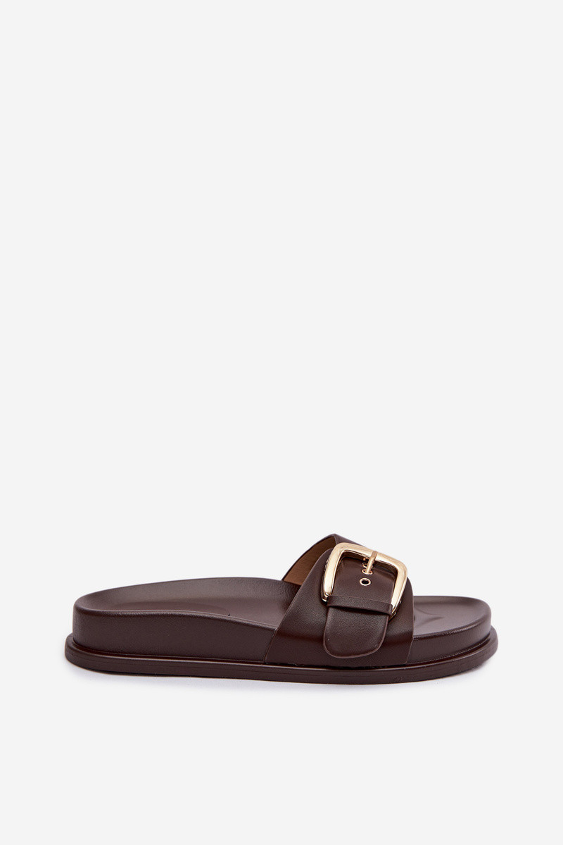 Dames slippers met gouden gespen in chocoladebruin Rosivana