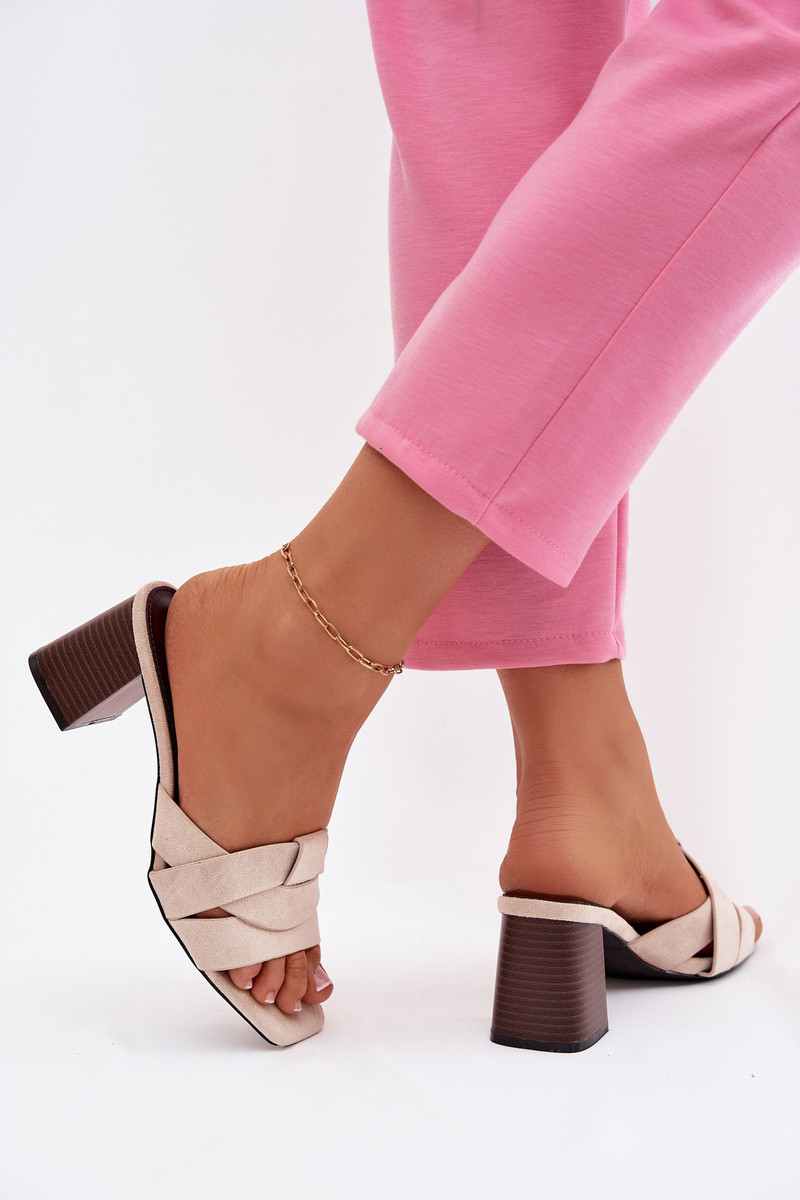 Damespantoffels met hakken Met Strepen van eco-suèdeoIne beige Corivelle