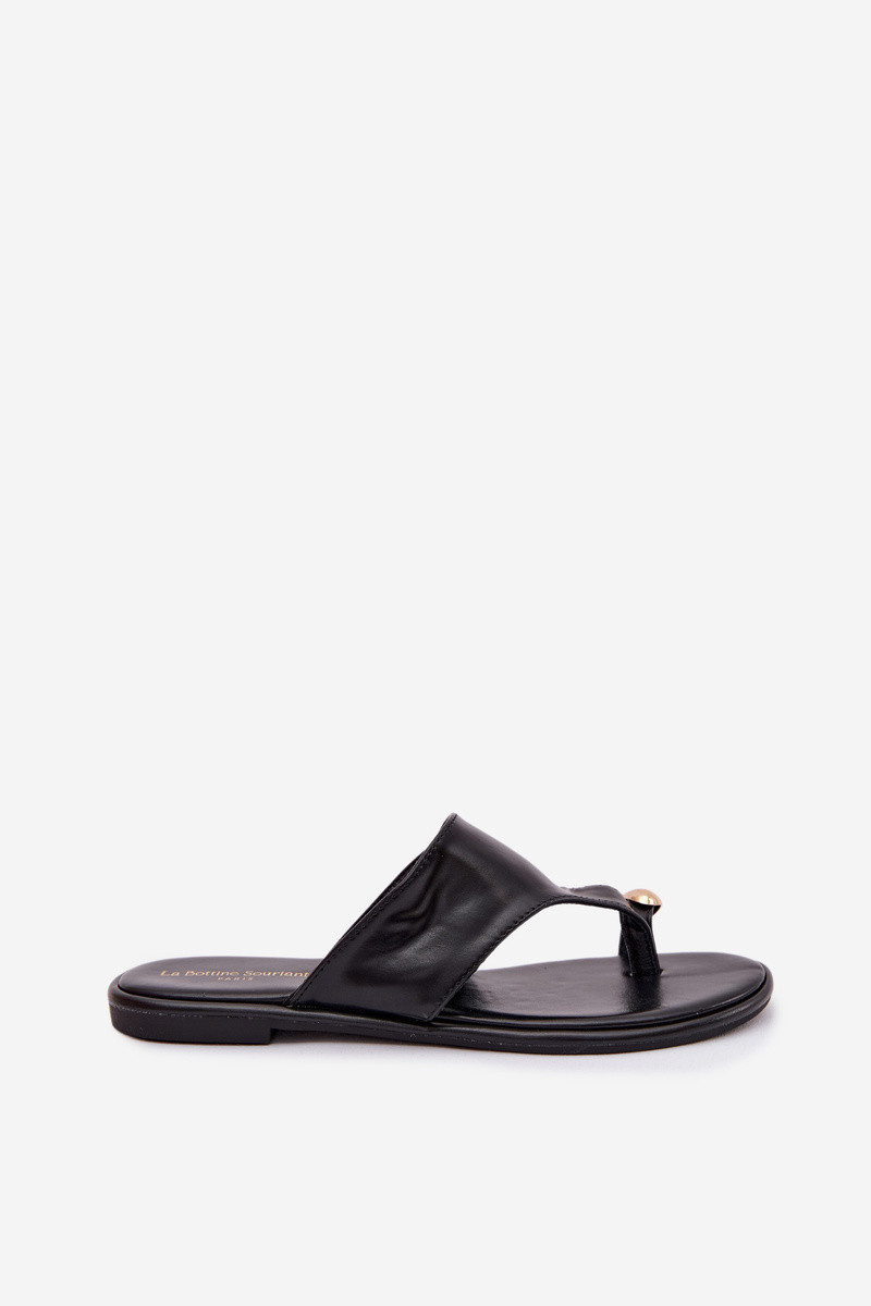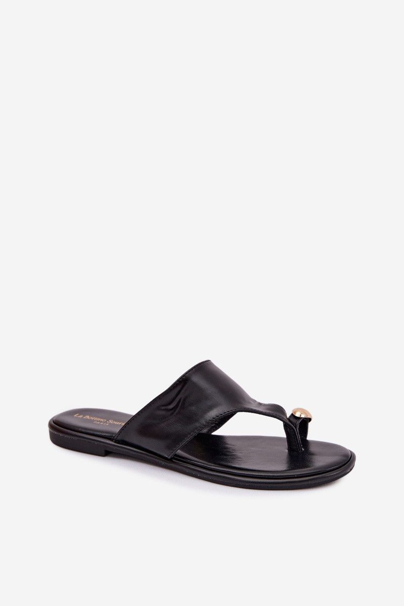 Dames platte slippers van kunstleer met gouden details in zwarte kleur Lavessa